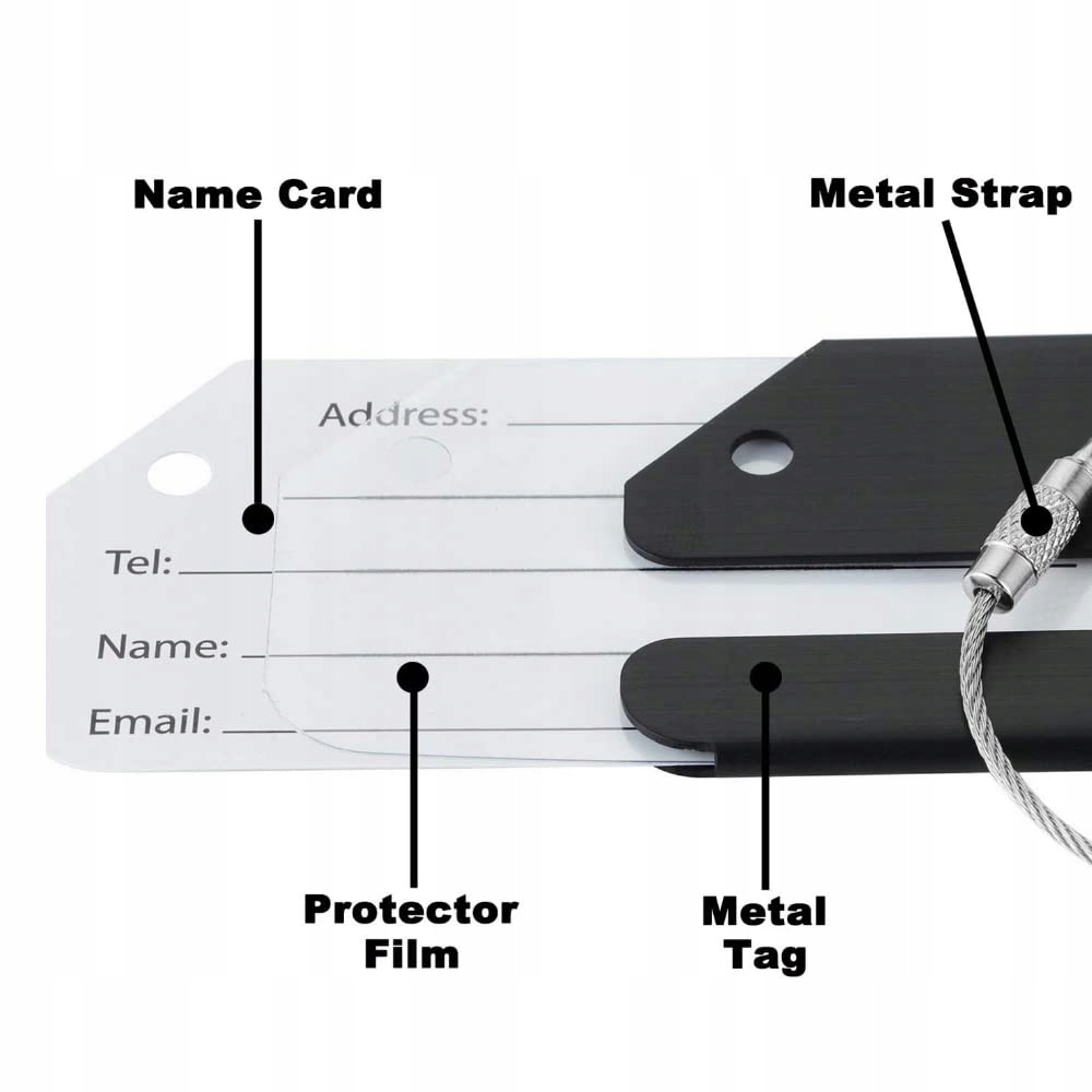 На багажной бирке видно ваше имя, а другая информация скрыта в целях защиты вашей конфиденциальности. Благодаря прочному скрученному проводу багажная бирка надежно удерживается на месте.
