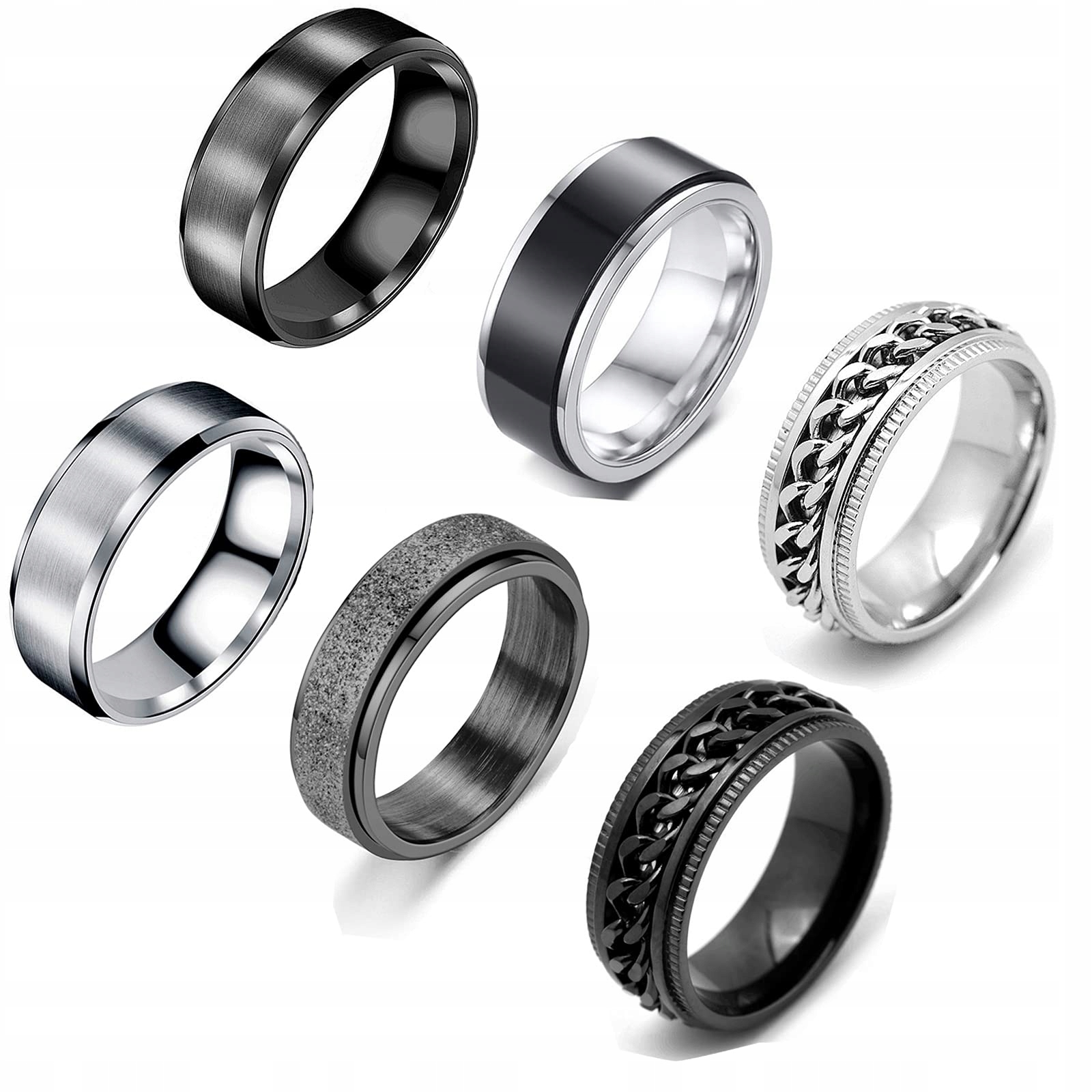 Набор состоит из 6 колец разного стиля. Изготовлен из нержавеющей стали, не выцветает, подходит для повседневного ношения. Дизайн Fidget поможет вам настроить свои эмоции и снять стресс.