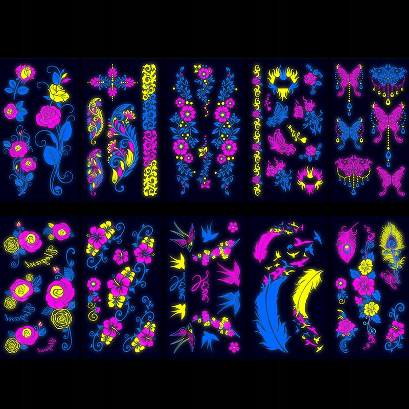 Универсальные и модные узоры: этот набор содержит различные флуоресцентные и металлические временные татуировки, включая рукава, геометрические узоры и узоры американского стиля. Выразите свой уникальный стиль и индивидуальность благодаря тем, кто подчиняется глазу и модным боди -артом.