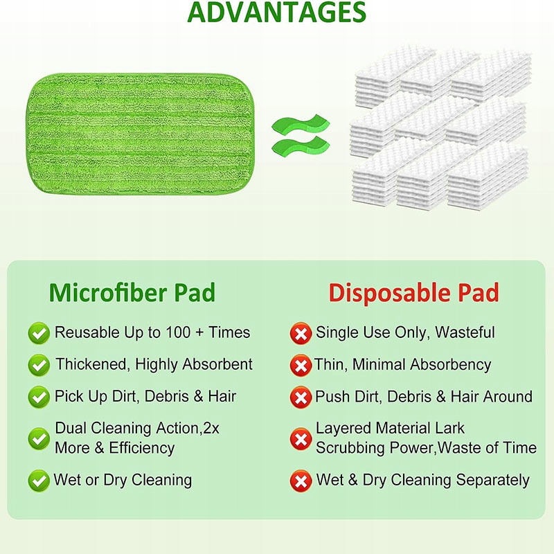 Экологичность и удобство: эти подушечки изготовлены из высококачественной микрофибры и пригодны для многократного использования и обеспечивают длительный срок службы. Их экологичность сокращает количество отходов, что делает их экологически безопасным выбором для домашней уборки.