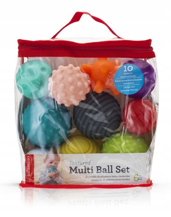 <ул> <ли> Каждый шар имеет разную форму и размер. <ли> Идеально подходит для сенсорных игр и развития осязания. <ли> 6 удобных для захвата мячей. <ли> Не содержит BPA. <ли> Упаковано в прозрачный пакет с ручкой. <ли> Возраст: 6м+.Внимание! Не подходит для детей младше 6 месяцев!