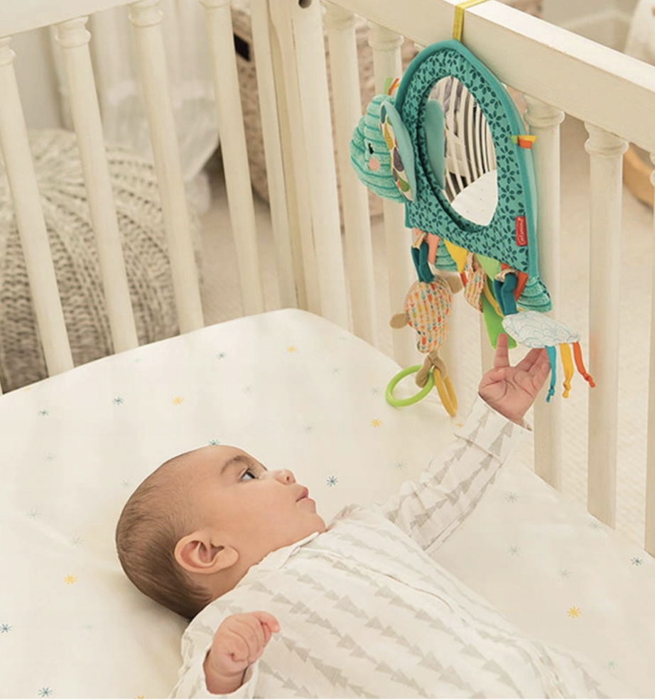 ПРЕИМУЩЕСТВА ДЛЯ РАЗВИТИЯ. Зеркало для занятий – это станция, с помощью которой дети могут открывать для себя и учиться в игровой форме во время путешествий и дома. Цвета и текстуры способствуют сенсорному развитию, а прорезыватели помогают успокоить воспаленные десны.