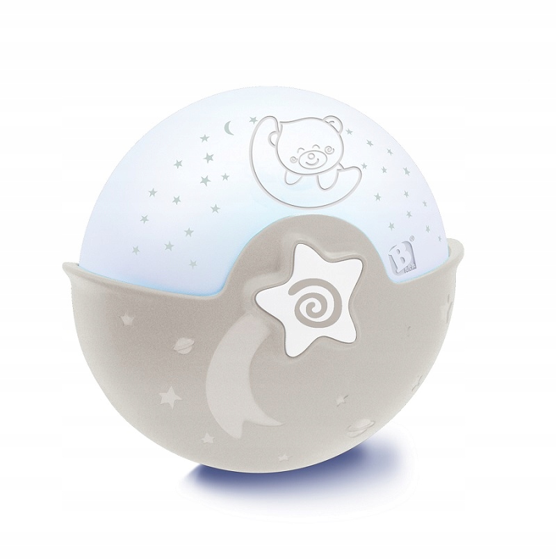 Запускается нажатием кнопки «ВКЛ». Столами удобно пользоваться, достаточно разместить их на прикроватной тумбочке рядом с кроватью. Он отображает разноцветные звезды и воспроизводит 6 различных мелодий и 3 естественных звука. Кроме того, у него есть возможность регулировать громкость звука: громко, тихо или выключено. Он выключается автоматически.