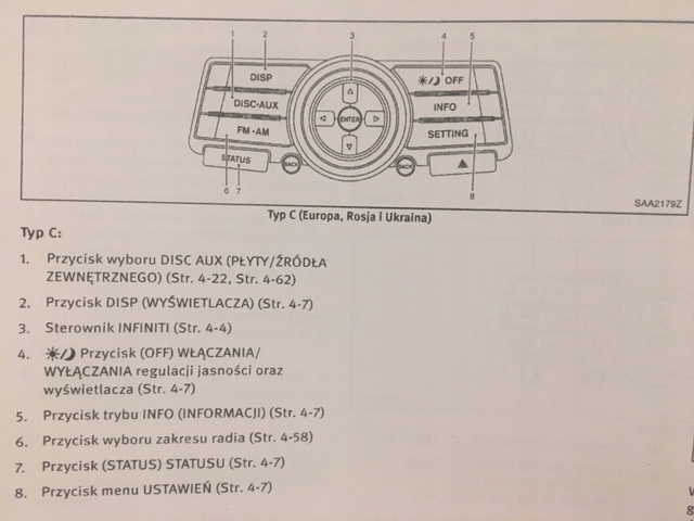 Infiniti FX II 2008-2017 Руководство пользователя Польского пользователя + аудиосистема