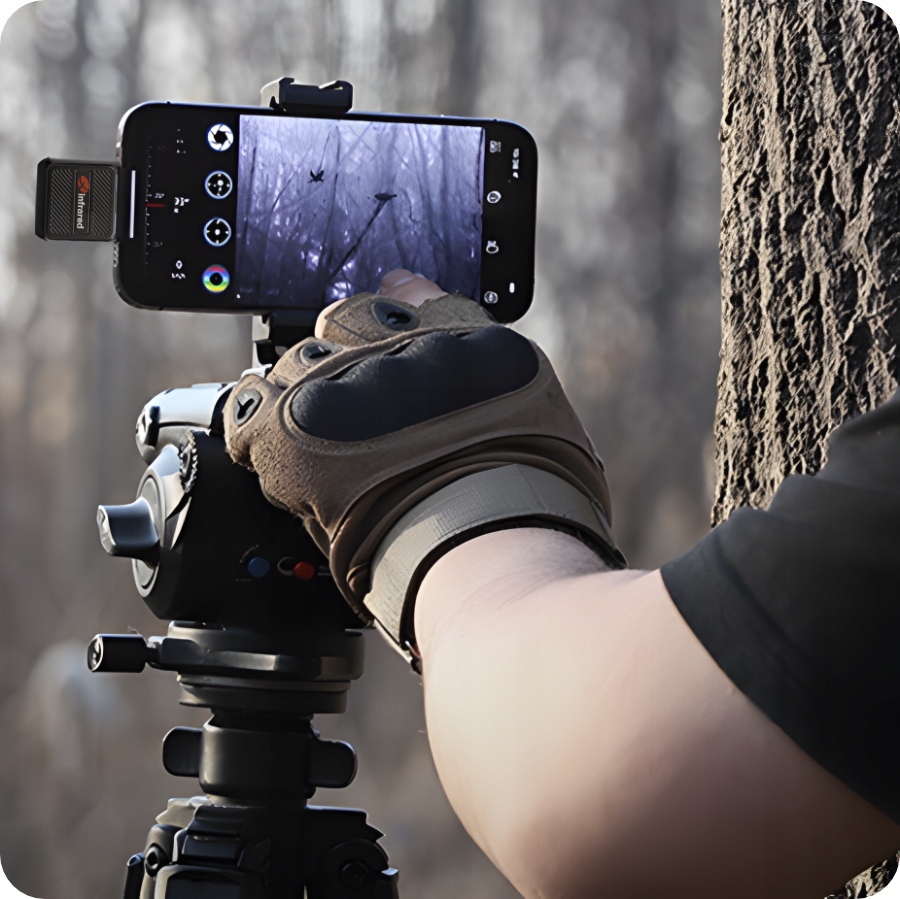 Камера прикреплена к специальной ручке, которая позволяет установить телефон, тепловая камера и лазерный прицел - что позволит удобные и точные измерения .