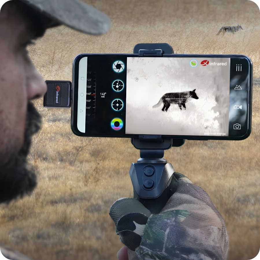 Камера позволяет выводить на превью тепловизора изображение с обычной камеры смартфона — такое решение существенно облегчает ориентирование в наблюдаемой сцене