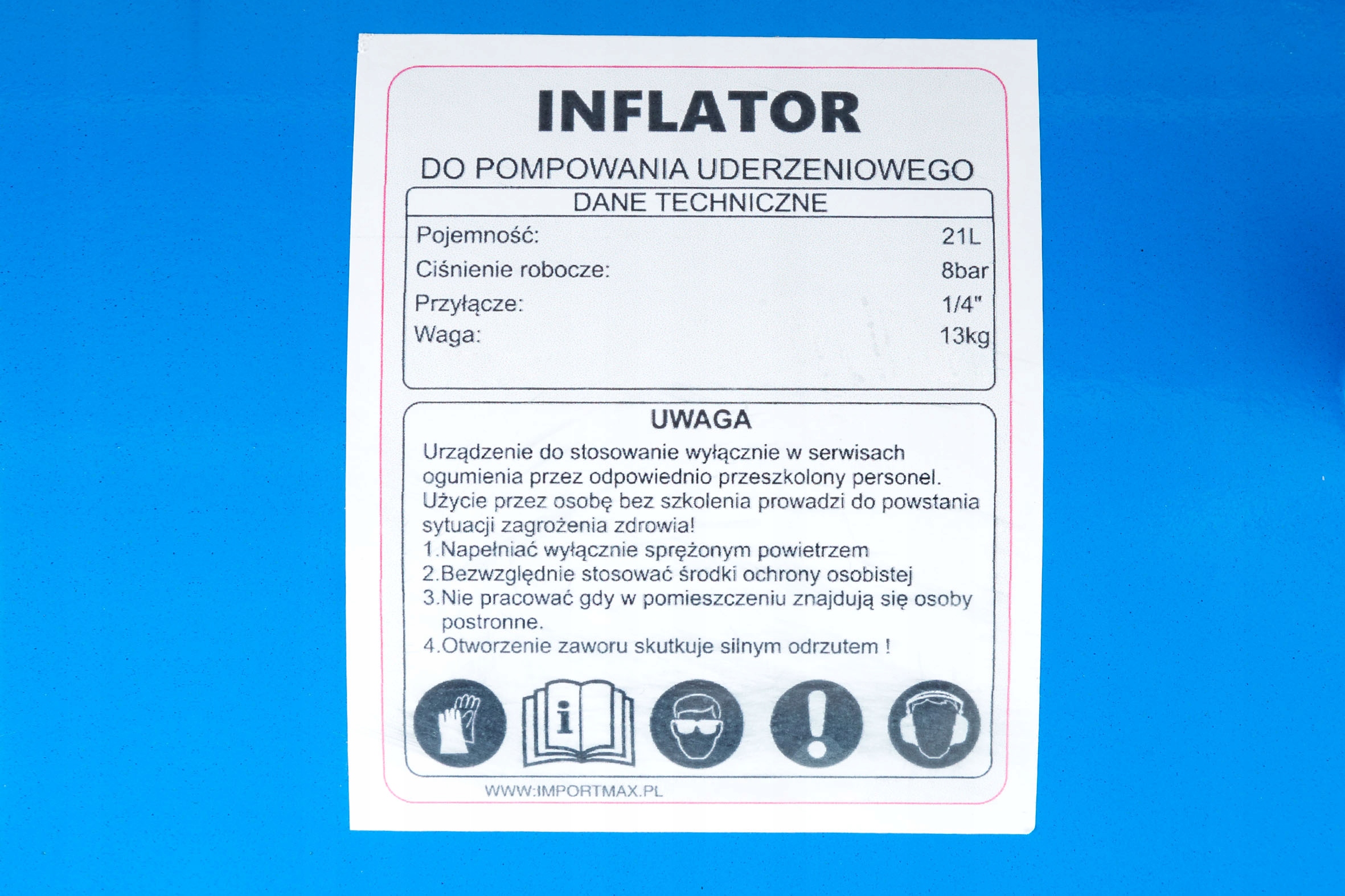 Предлагаемый ИНФЛЯТОР является идеальным оборудованием для автосервисов и шиномонтажных предприятий. Применяется для ударного накачивания бескамерных шин в процессе монтажа шины на обод. При срабатывании накачивающего устройства шина герметизируется на ободе, и мы можем накачать колесо до предписанного давления. Накачку можно использовать для колес легковых автомобилей, фургонов и грузовых автомобилей.