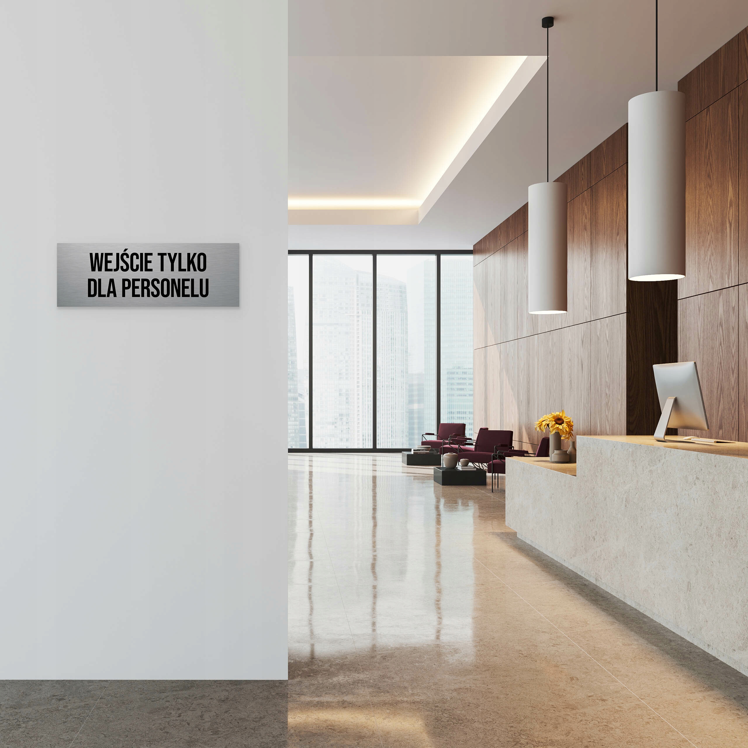 Информационная пластина на входе в дверь только для сотрудников Dibond 20x7cm