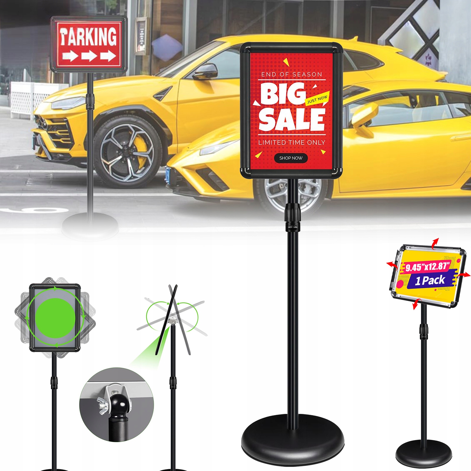 ✔ Регулируемый угол наклона и идеальная высота. Информационный стенд можно поворачивать на 360 градусов на любой угол, как по горизонтали, так и по вертикали. Высоту можно регулировать от 75 см до 125 см. На задней части подставки имеется барашковая гайка, которая позволяет регулировать угол наклона без инструментов, поэтому угол наклона можно легко отрегулировать в соответствии с потребностями дисплея под разными углами.