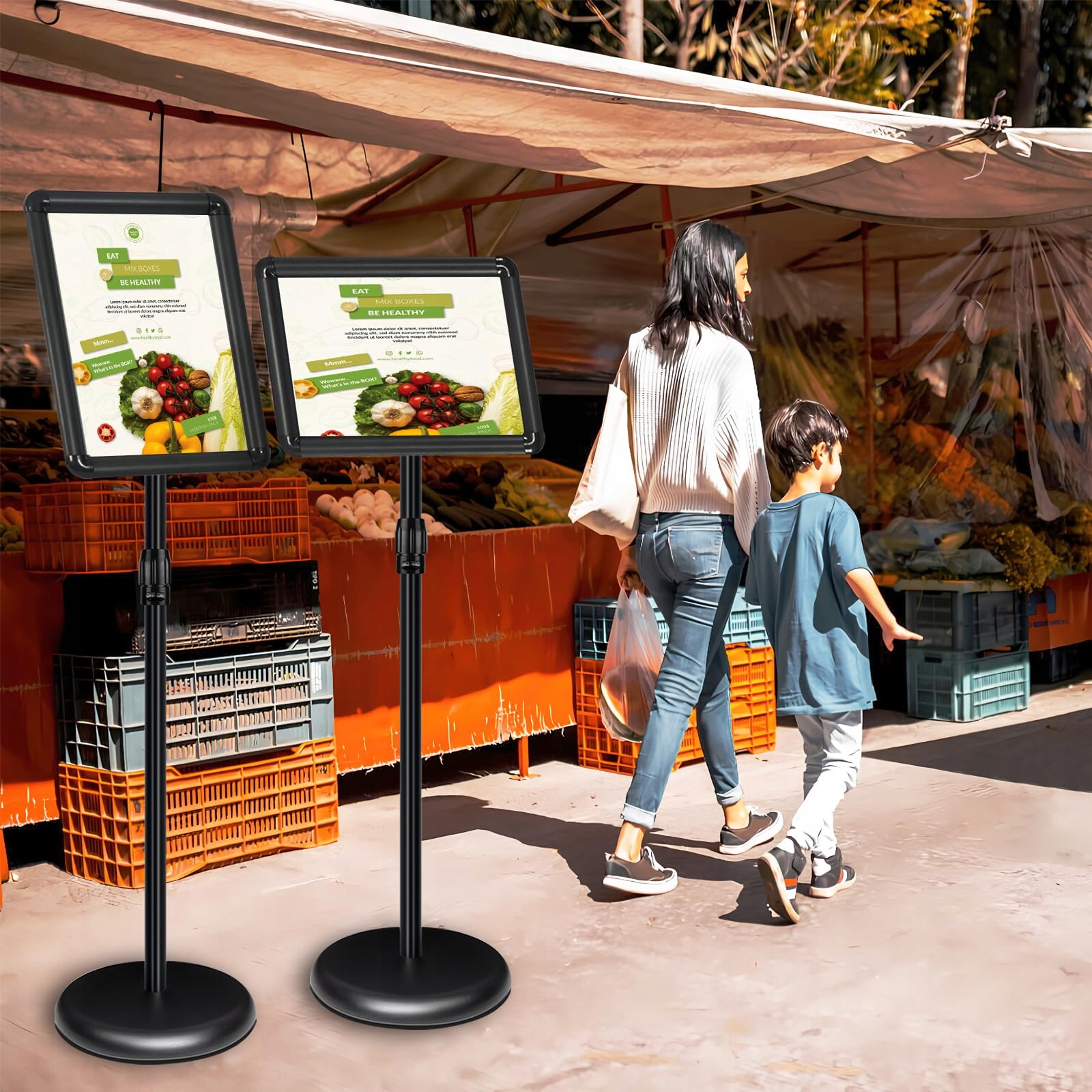 ✔ Регулируемый угол наклона и идеальная высота. Информационный стенд можно поворачивать на 360 градусов на любой угол, как по горизонтали, так и по вертикали. Высоту можно регулировать от 75 см до 125 см. На задней части подставки имеется барашковая гайка, которая позволяет регулировать угол наклона без инструментов, поэтому угол наклона можно легко отрегулировать в соответствии с потребностями дисплея под разными углами.