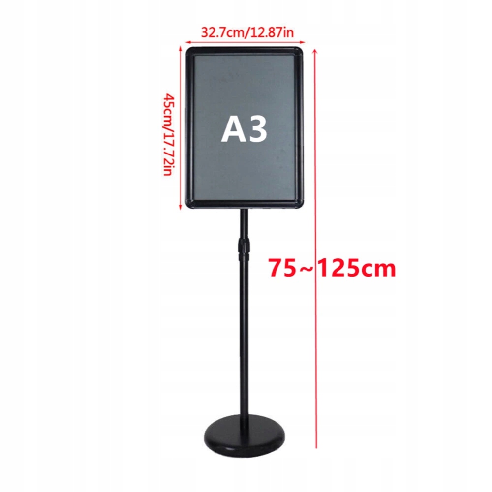 ✔ Регулируемый угол наклона и идеальная высота. Информационный стенд можно поворачивать на 360 градусов на любой угол, как по горизонтали, так и по вертикали. Высоту можно регулировать от 75 см до 125 см. На задней части подставки имеется барашковая гайка, которая позволяет регулировать угол наклона без инструментов, поэтому можно легко отрегулировать угол наклона в соответствии с различными углами отображения.