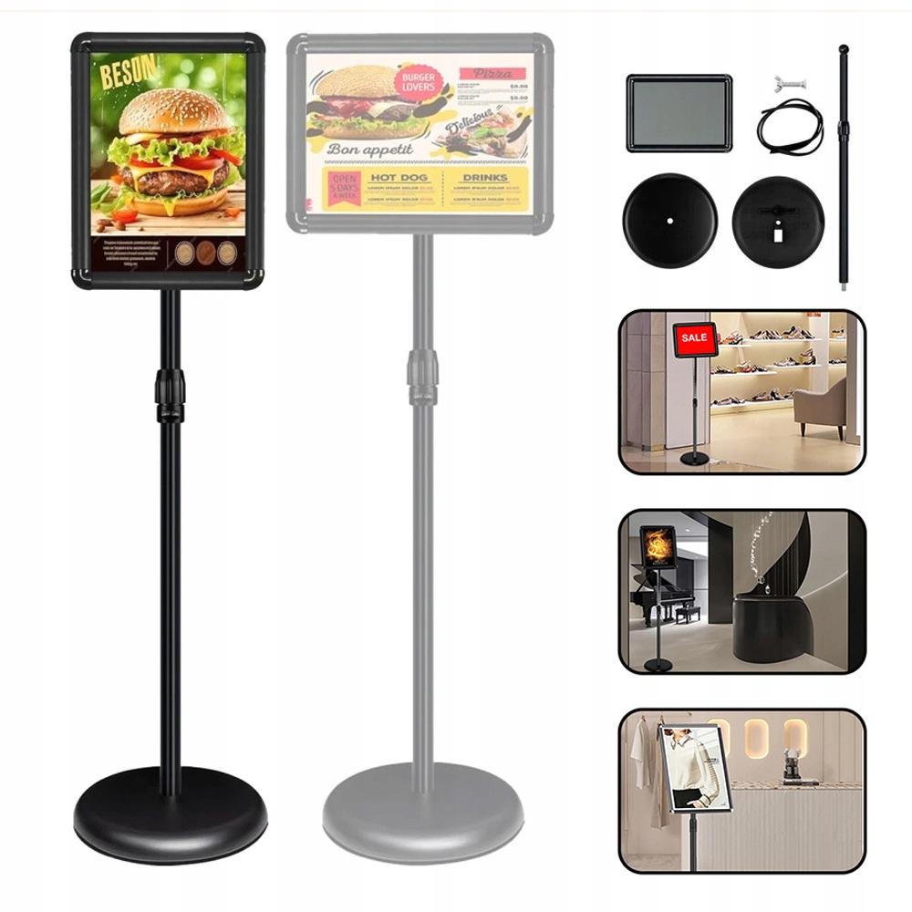 ✔ Широкое применение подставки для плакатов: Прочный держатель для плакатов с толстым основанием можно устойчиво разместить в любом месте, например, на входах в офисные здания, на лестницах, на выставочных приемах, в вестибюлях, приемах, выставочных залах, ресторанах, торговых центрах, офисах, кафе, гостиницах, банках, больницах, школах, на выставках, церквях, концертах, киновыставках, автосалонах, железнодорожных вокзалах и других общественных мероприятиях.