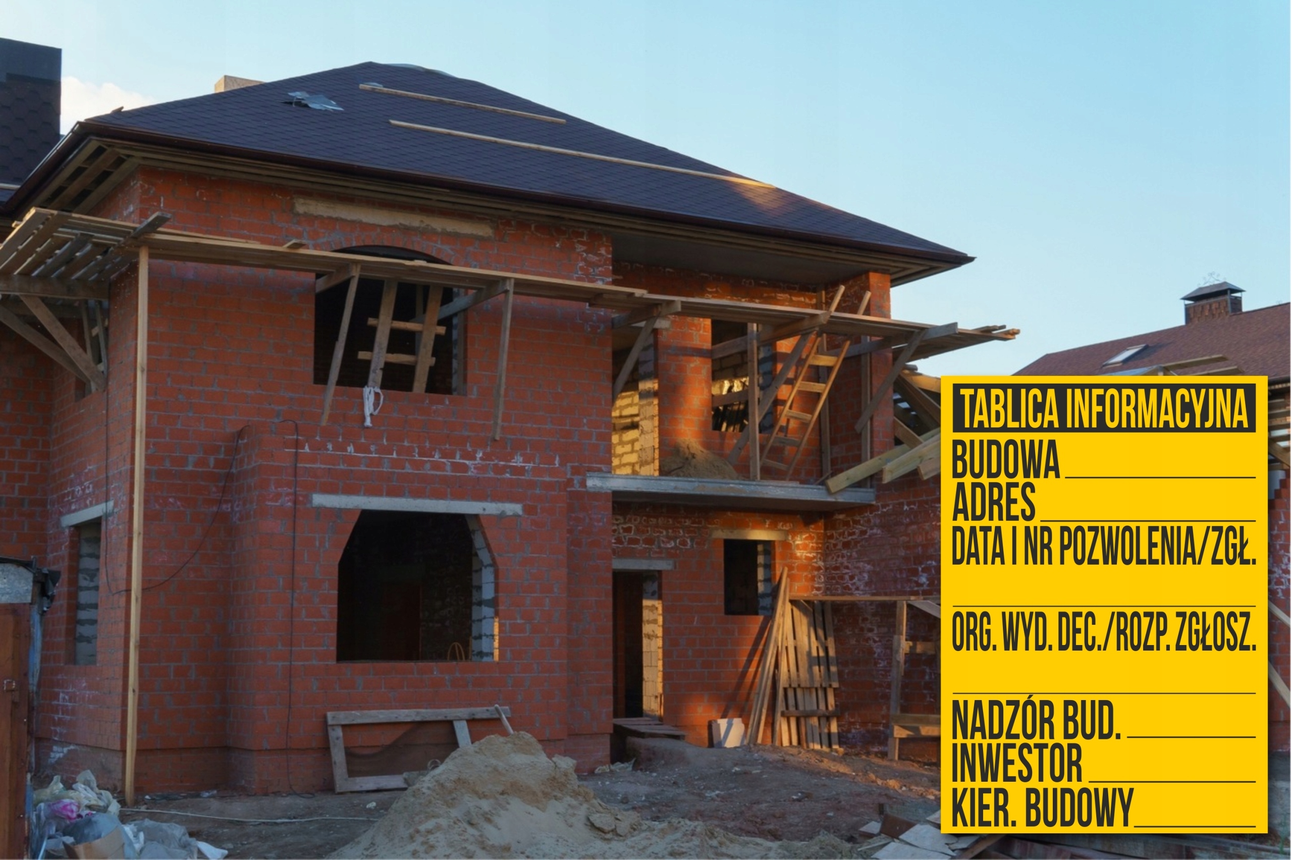 - Информационная плата строительства шириной 50 см x 70 см в высоту