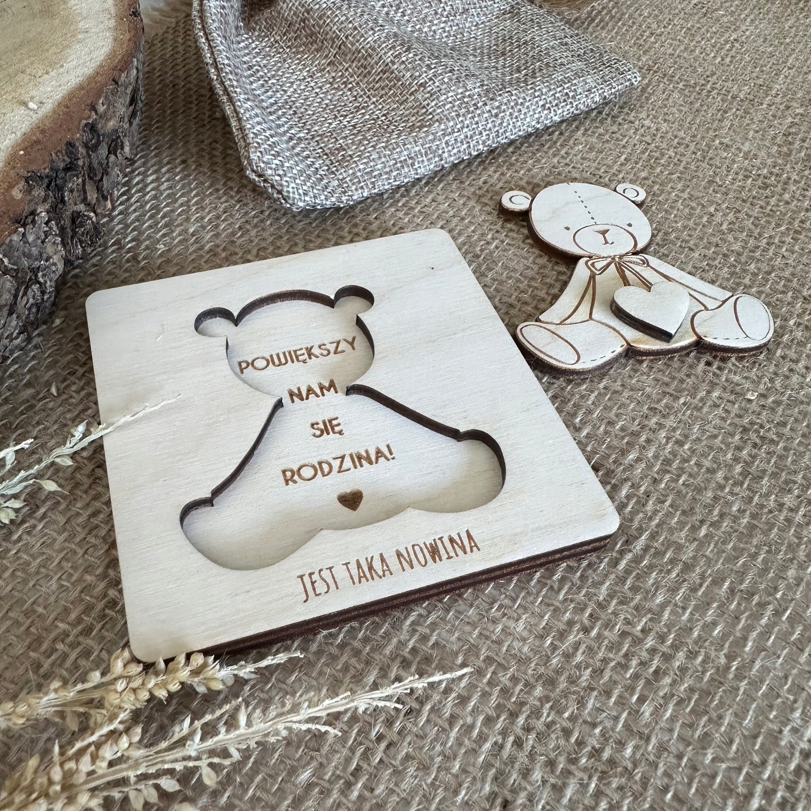 ❤️ Элегантная деревянная открытка, сообщающая о беременности.