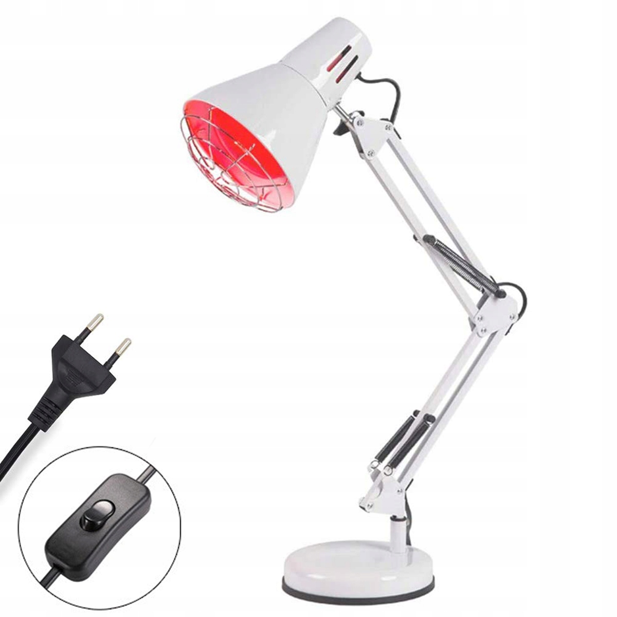 Регулируемая высота и угол: инфракрасная нагревательная лампа имеет твердую, прочную металлическую стойку и основание, а шея и головка регулируются в диапазоне 180 °. Лампа может быть установлена в правильном положении и направлении в зависимости от ваших потребностей. Сетчатая анти -хвосторная крышка безопасна, надежная и удобная в использовании. Разъем головки лампы оснащен резьбой E27 и винтовой лампочкой, что делает его универсальным и простым в замене.