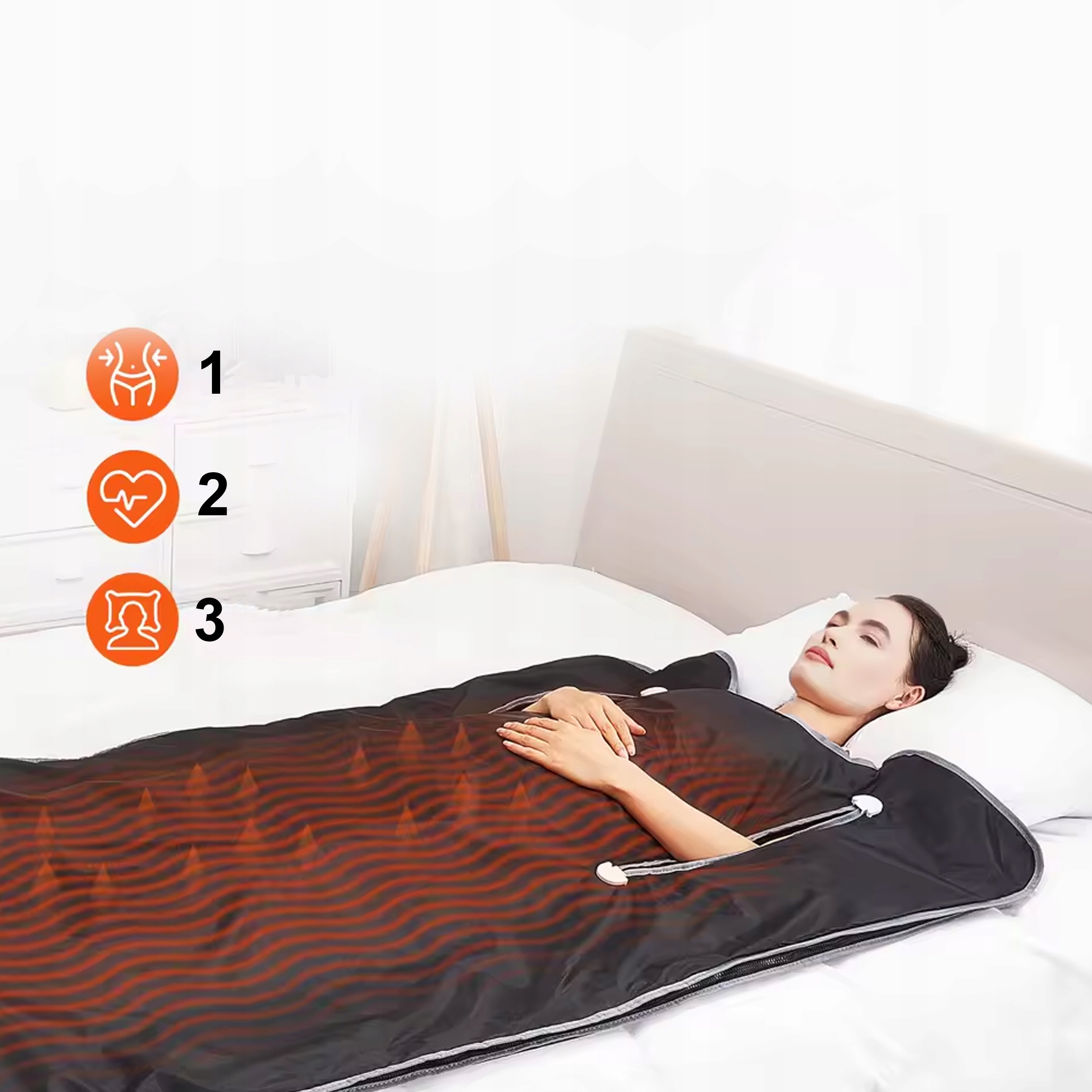 Инновационное одеяло для домашнего спа -салона, в котором используется длинная инфракрасная технология для для уменьшения жира, улучшения кровообращения и качества сна . Идеально подходит для личного использования и в офисах биологического обновления.
