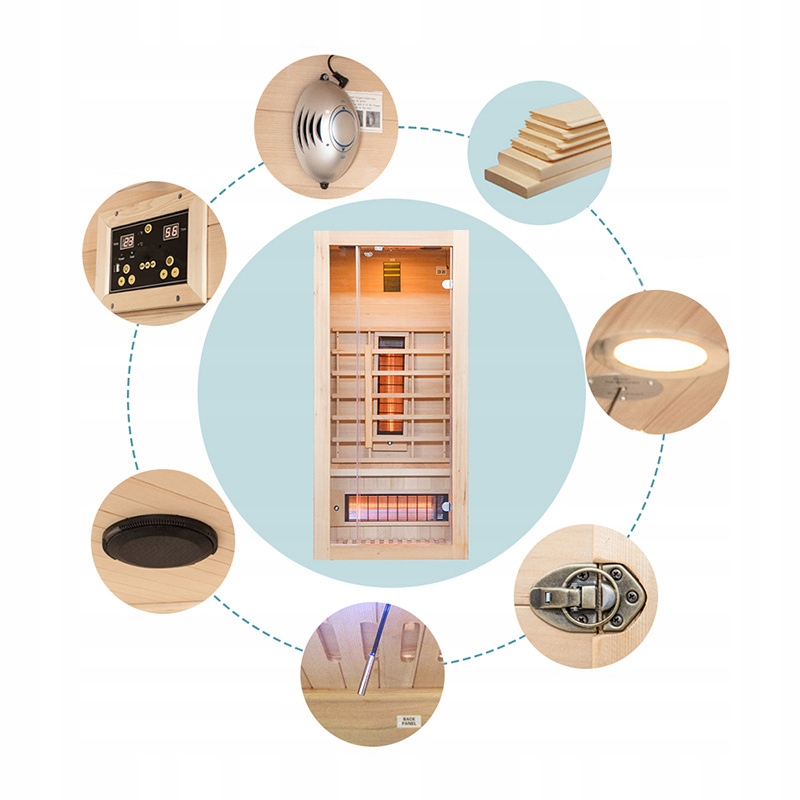 6. Простота установки и низкое энергопотребление: Для работы достаточно стандартного напряжения 230 В. сауну, а это означает, что установка и использование очень просты. Кроме того, эти сауны характеризуются низким энергопотреблением, что выражается в их экономичности.