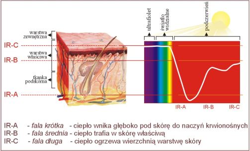 Тепло в ИК-кабине направляется непосредственно на тело. Только 20% согревает атмосферу в салоне. Тепло, идентичное тому, которое вырабатывается человеческим телом, подобное теплу солнца, из которого исключено вредное УФ-излучение.