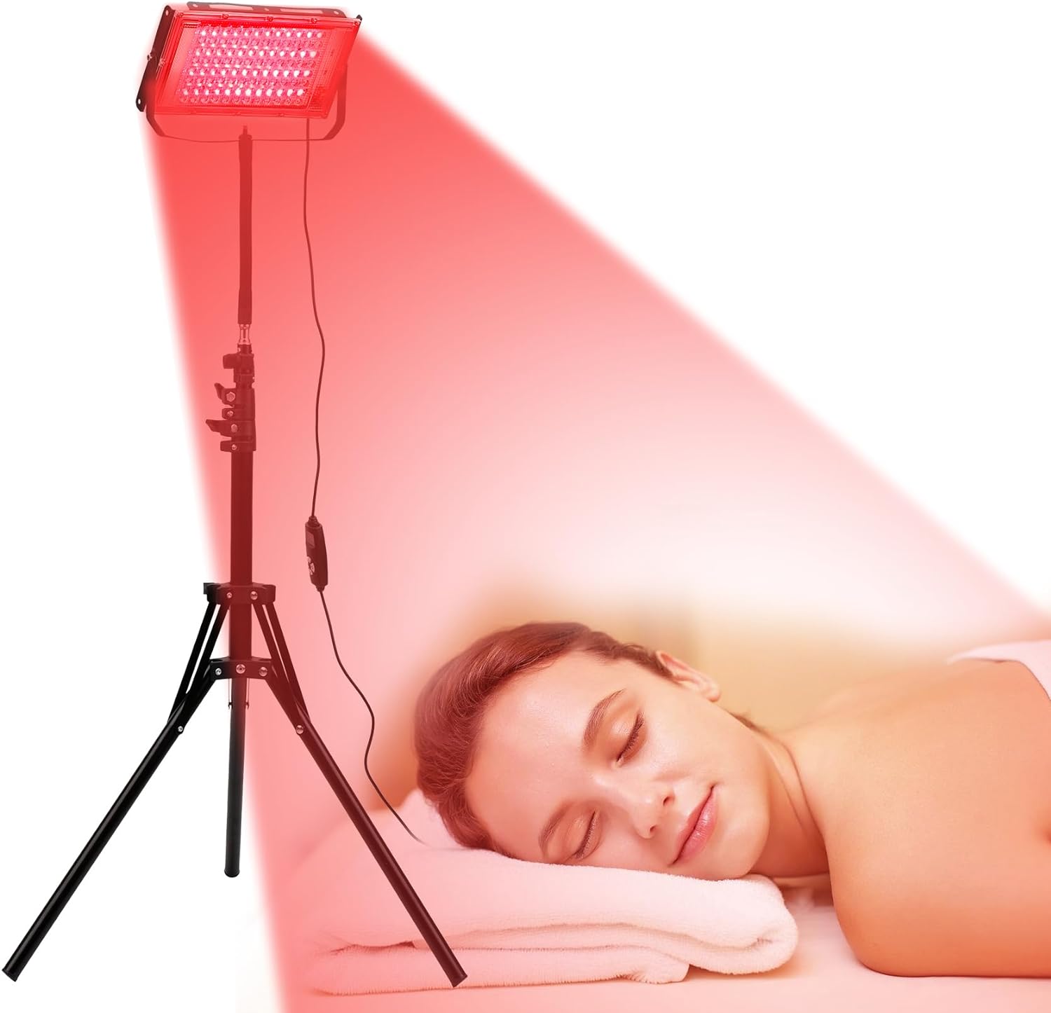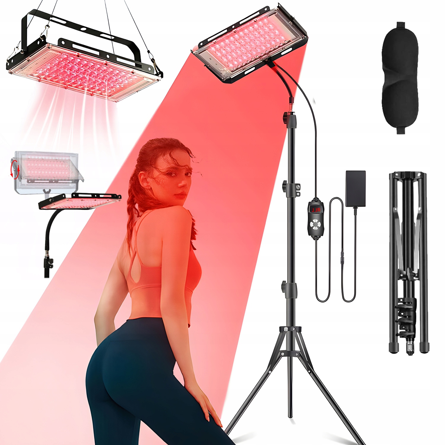 - Складной прочный штатив удерживает лампу стабильно при терапии красным светом, без вибрации.
