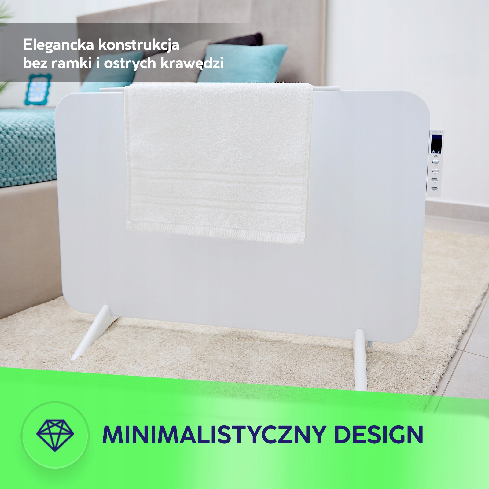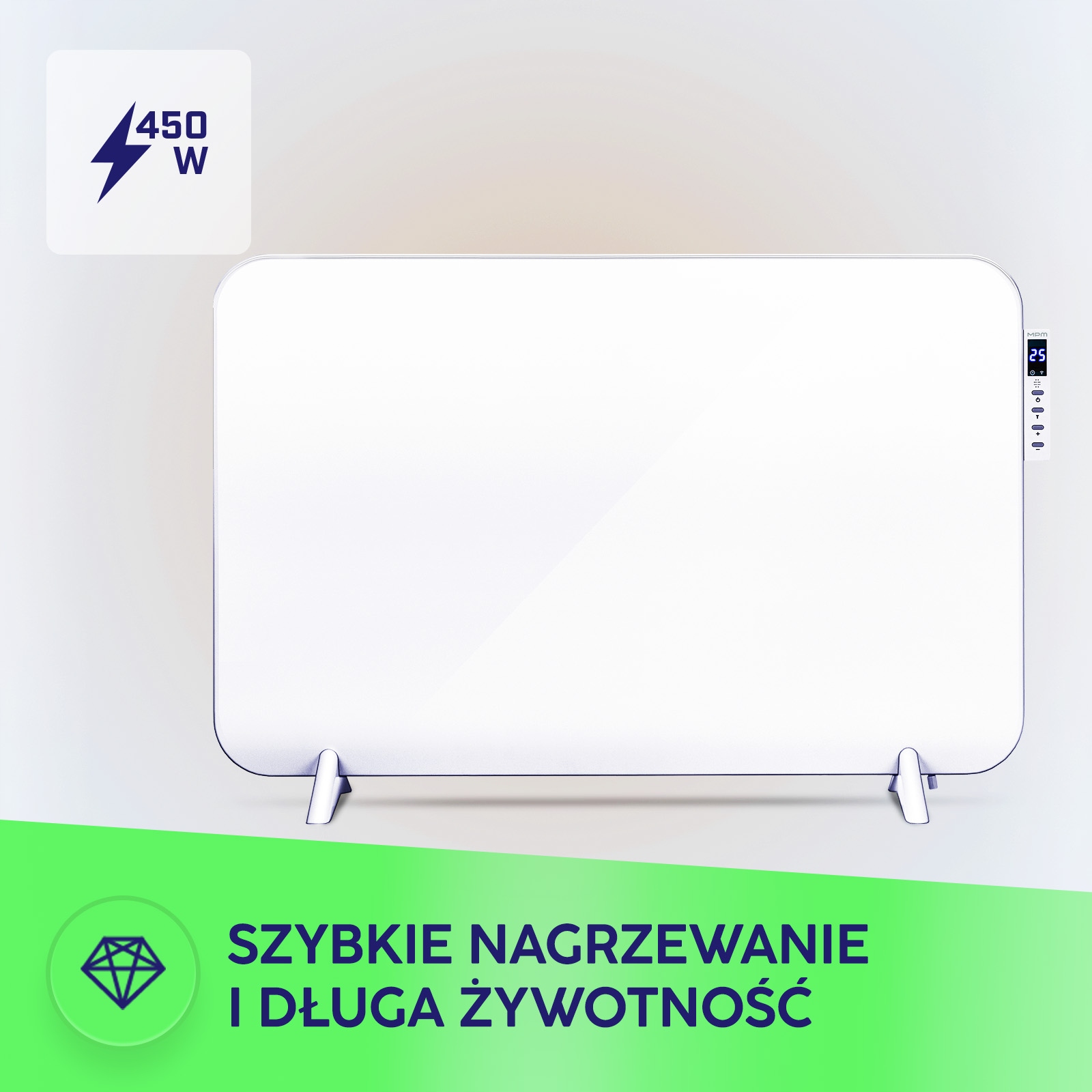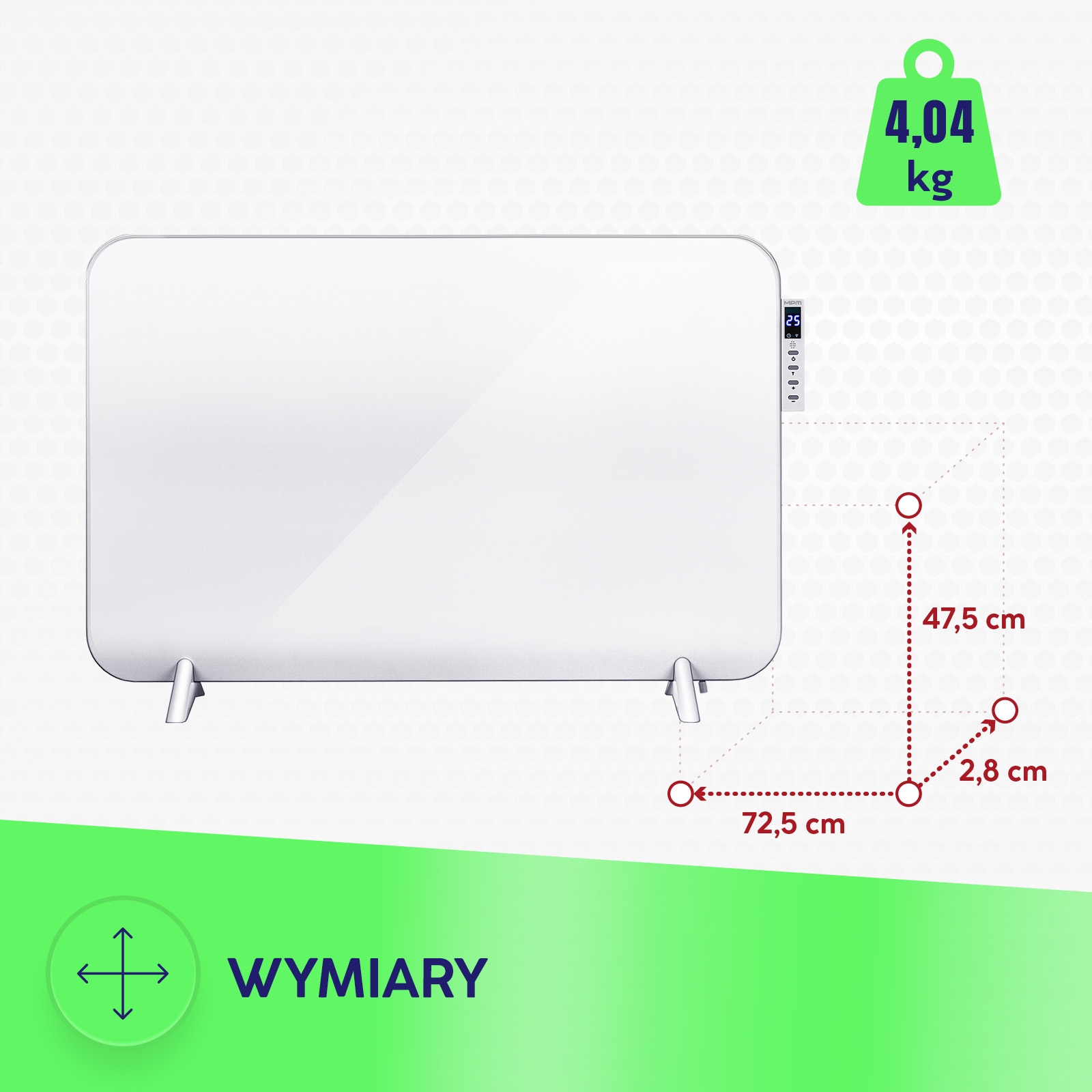MPM MUG-24 Инфракрасный электрический нагреватель-это современный нагревающий раствор, который сочетает в себе элегантный дизайн с функциональностью. Тонкая нагревательная панель характеризуется элегантной структурой, лишенной рамки и острых краев, что делает ее идеально вписаться в любой интерьер. Оснащенный электронным дисплеем и пультом дистанционного управления, он предлагает удобный управление процессом нагрева.