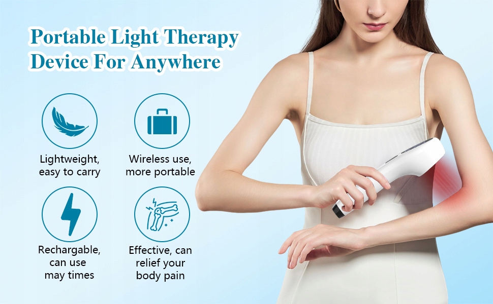 ✅ Эргономичный дизайн: Кривая, эргономическая конструкция устройства легкой терапии облегчает его использование. Он портативный, компактный, заряженный через USB и может использоваться по беспроводной связи. Идеально подходит как для домашнего использования, так и при путешествии.