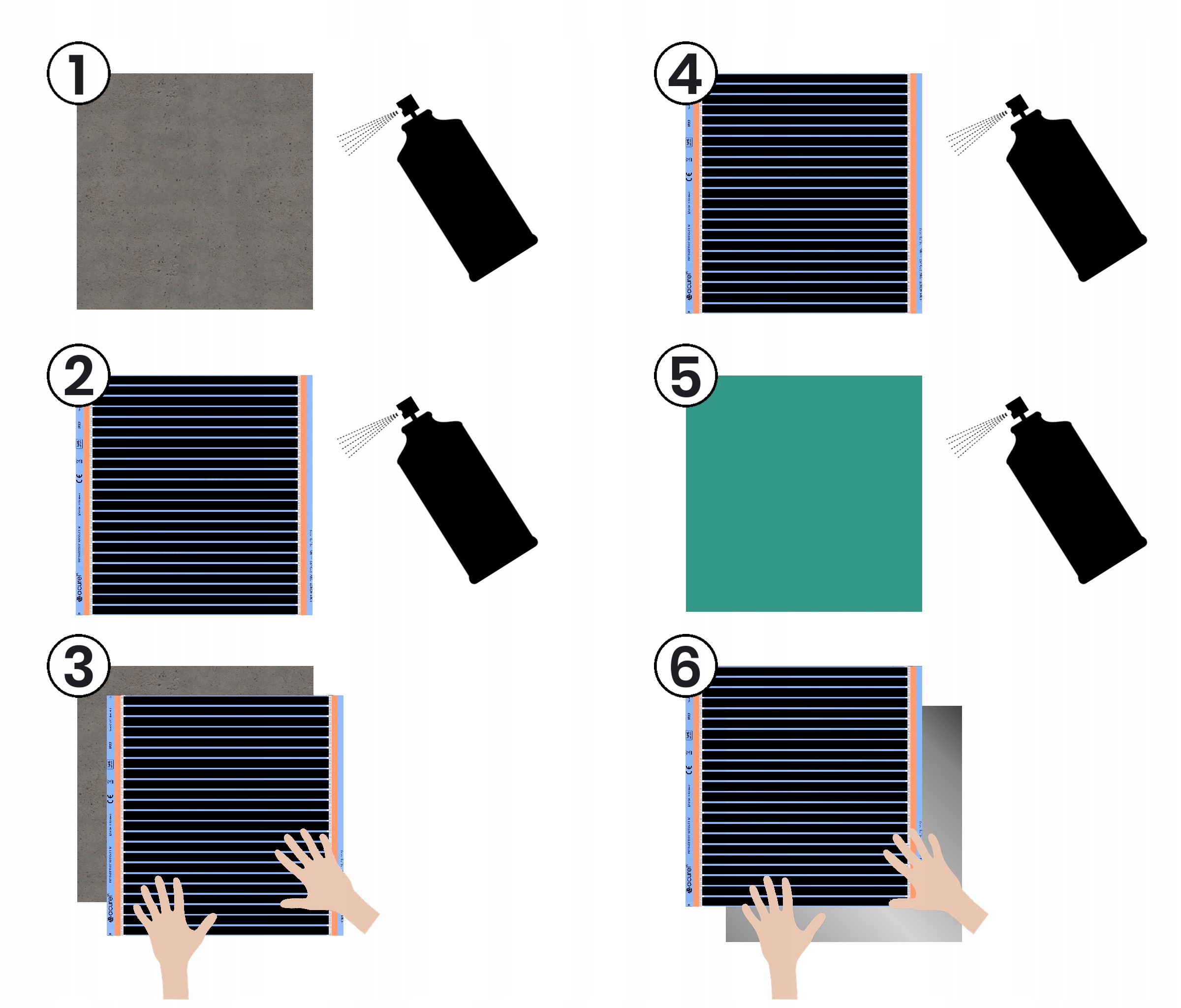 Предлагаемые комплекты отличаются поверхностью нагревательной фольги и количеством креплений. аксессуары, подобранные под фольгированную поверхность.