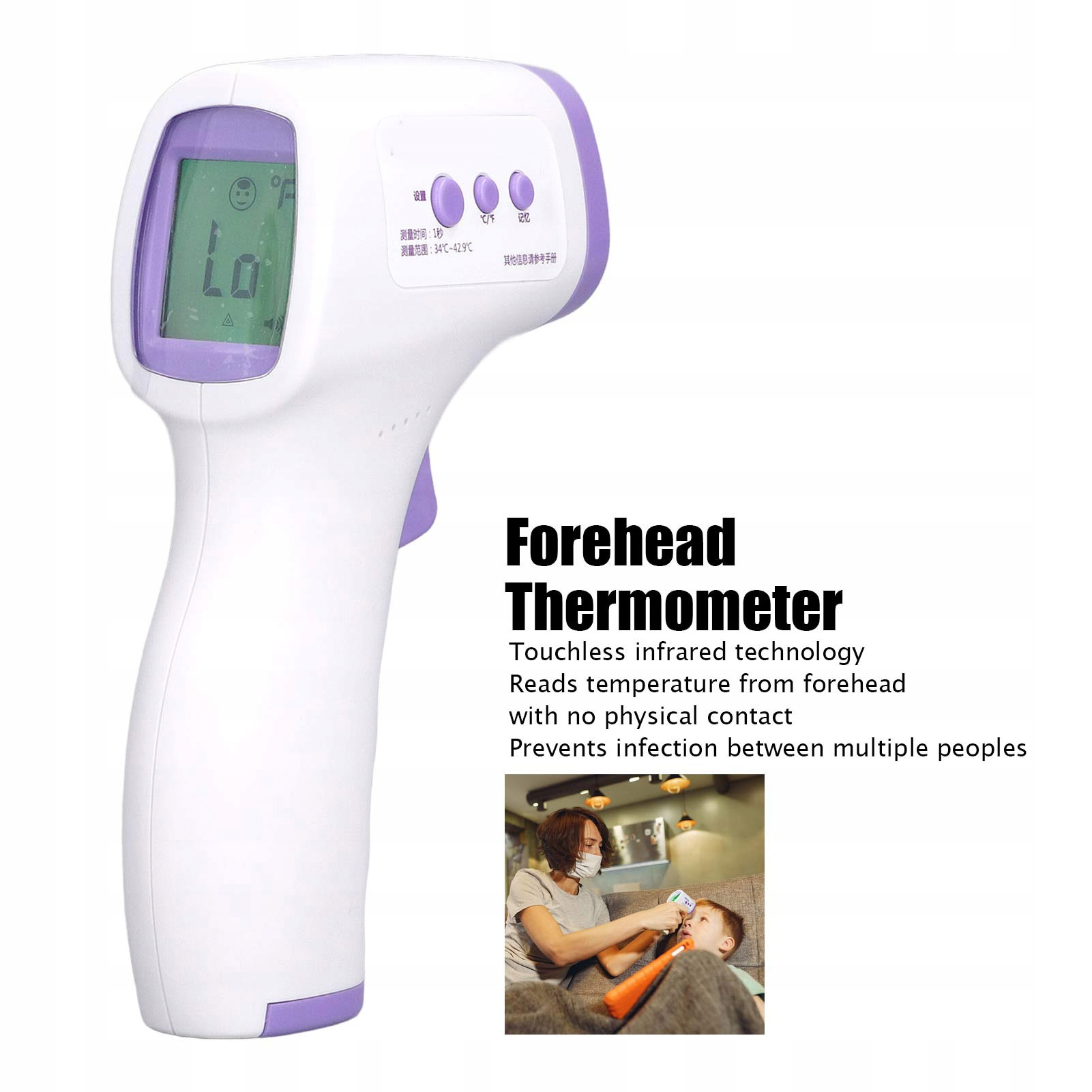 4. Многофункциональность: ручной термометр предназначен для всех возрастов, взрослых, младенцев и пожилых людей, он также может измерять температуру помещения, предметов и жидкости.