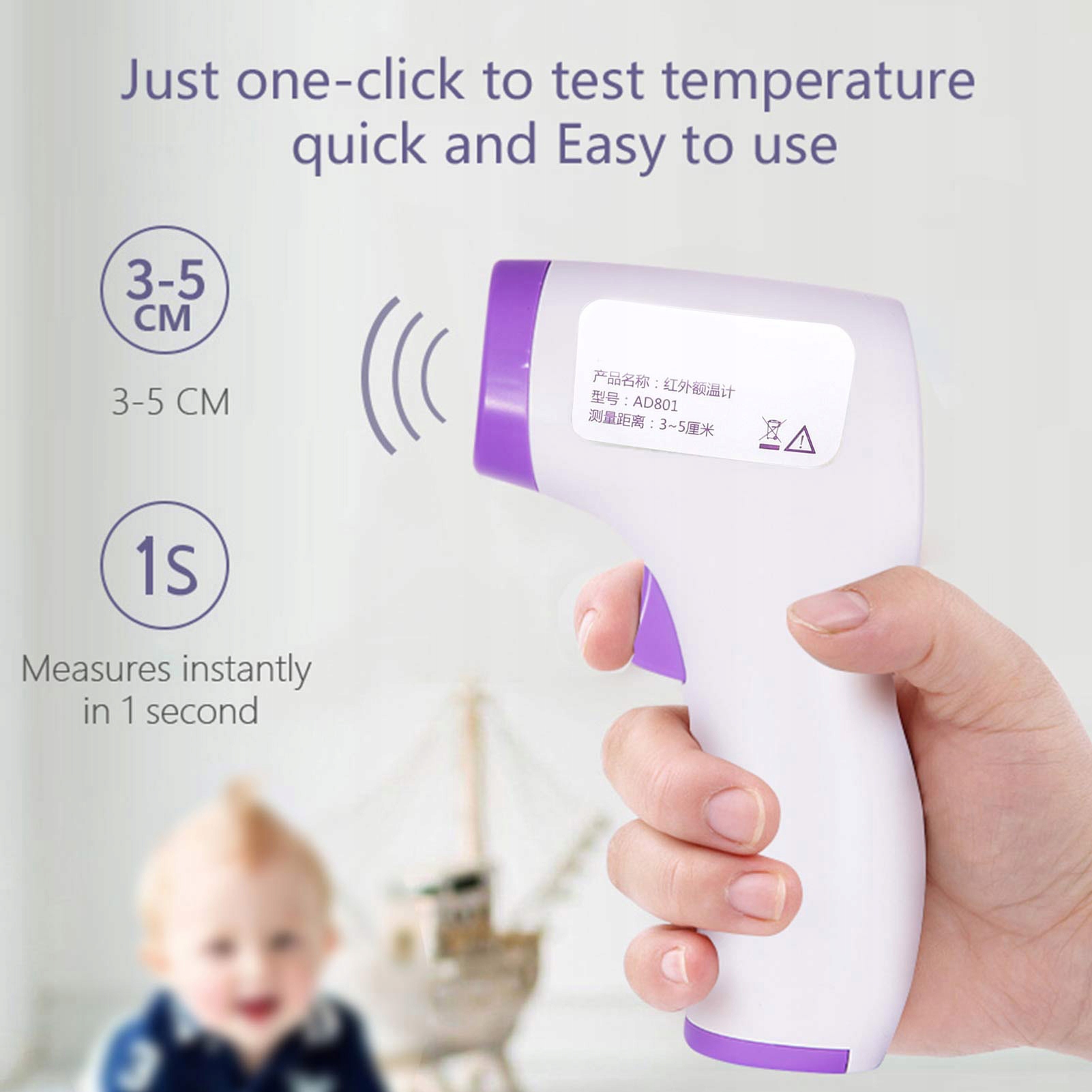 3. Быстро и точно: термометр оснащен передовой инфракрасной технологией и высокоточным датчиком. Для измерения температуры требуется всего 1 секунда, а точность измерения температуры находится в пределах 0,1 ℃.