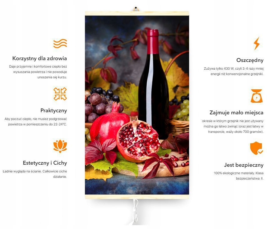 Это инфракрасный (длинноволновой) обогреватель, он нагревает предметы в помещении, но не воздух. Это здоровое и комфортное отопление дома, благодаря которому мы экономим электроэнергию, а значит и деньги. Ощущение комфорта выше благодаря длинноволновой инфракрасной технологии при температуре 20°С, чем при использовании конвектора с высоким энергопотреблением при температуре до 25°С.