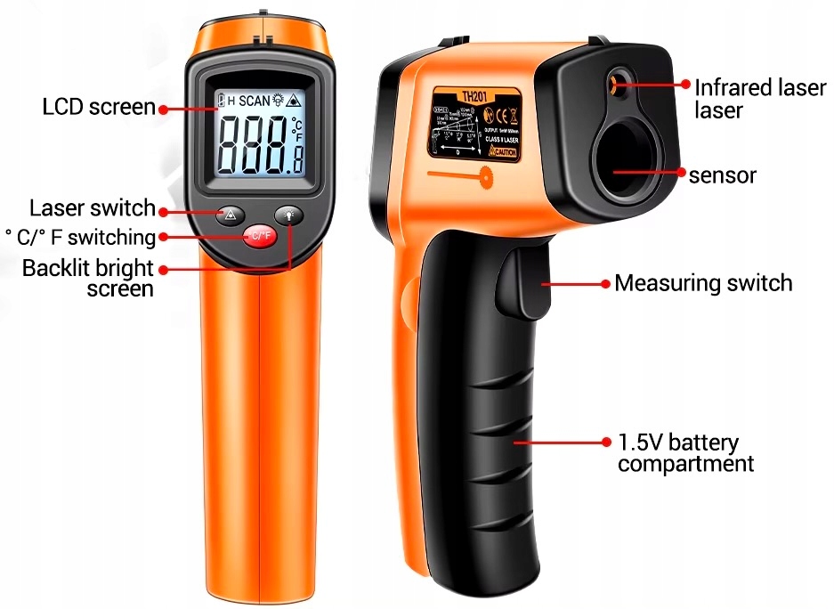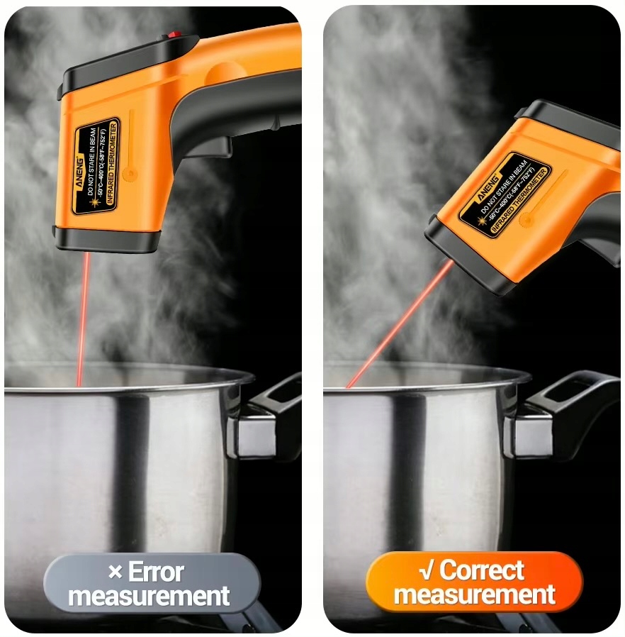 Инфракрасный термометр измеряет температуру поверхности объекта путем обнаружения инфракрасного излучения. Устройство идеально подходит для быстрого и безопасного измерения температуры горячей поверхности, токсичной или трудности для достижения объектов, что устраняет необходимость прямого контакта.