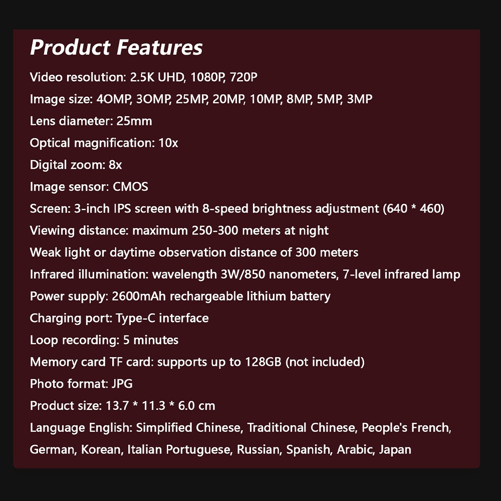 Инфракрасный телескоп ночного видения 2,5k UHD 40MP ночного видения 8-кратный зум M2