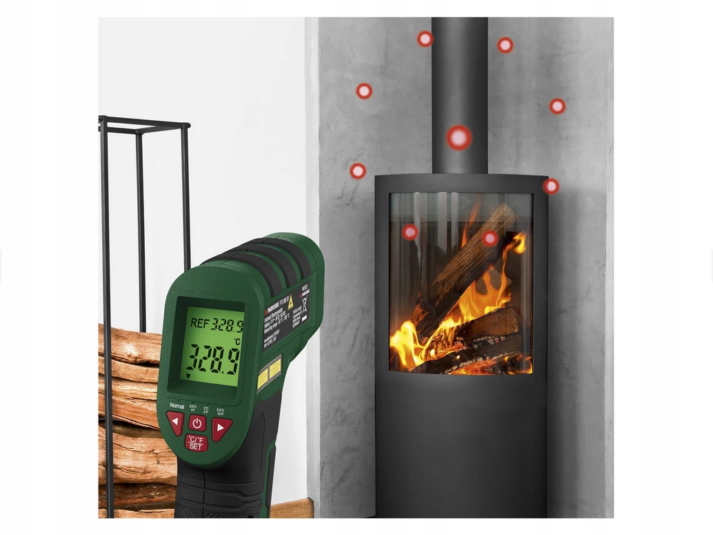 Для быстрого измерения температуры поверхности Идеально подходит для обнаружения мостов холода и мест, подверженных риску образования плесени Точный инфракрасный измерительный сигнал 8-точечный лазер для точного отображения измеряемой площади Цветной дисплей и звуковое предупреждение в случае разницы между выбранным эталонным значением и фактическое измеренное значение Синий = измеренное значение ниже эталонного значения/красный = измеренное значение выше эталонного значения/зеленый = измеренное значение примерно соответствует эталонному значению Индикатор замены батареи и автоматическое отключение (ок. 60 секунд) Эргономичная ручка с мягкой поверхностью Батарея и инструкция в комплекте p>