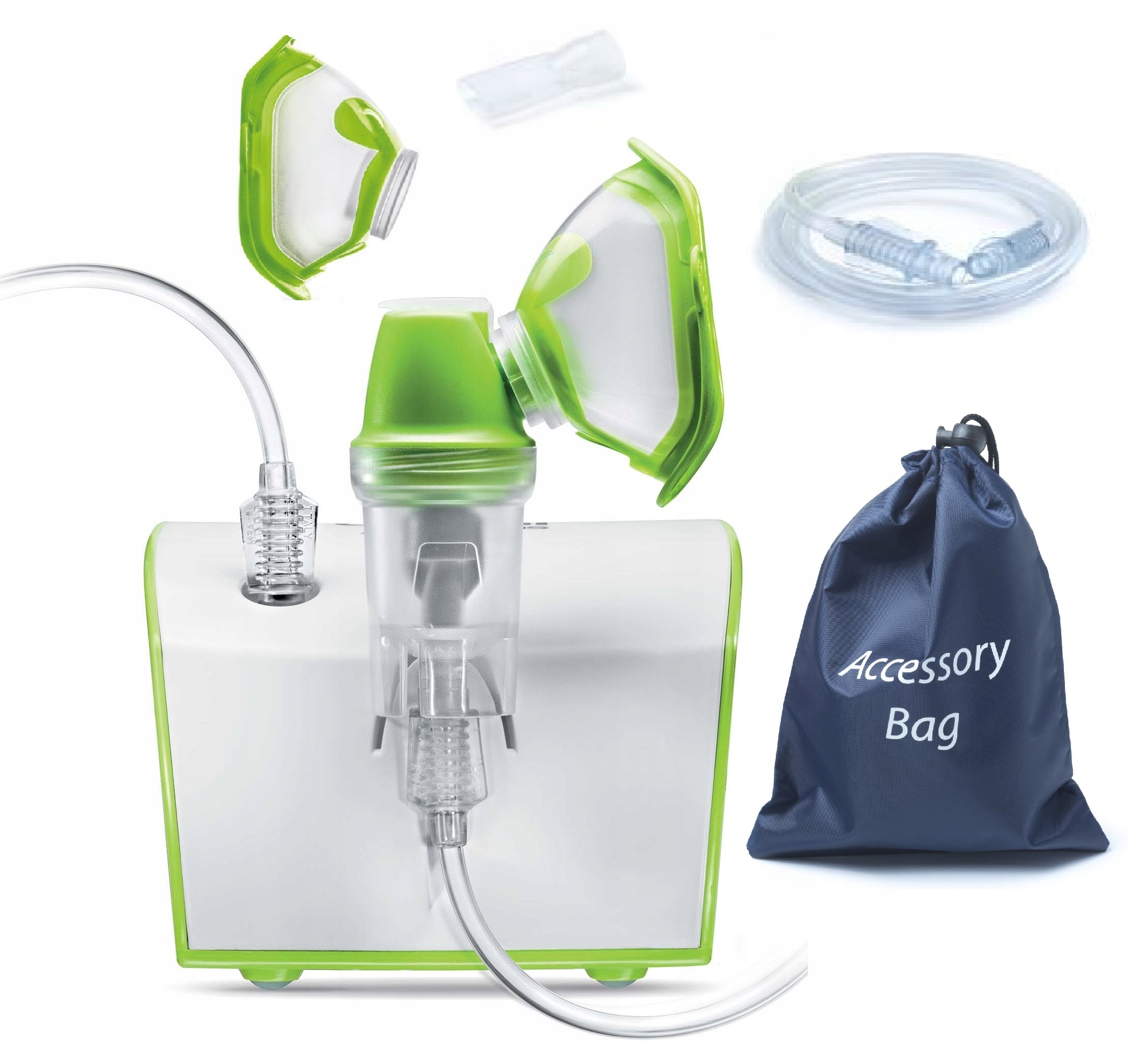 ингалятор, 2 маски (детская и взрослая), небулайзер, шланг, мундштук, сумка для аксессуаров, Польша руководство пользователя, гарантийный талон.
