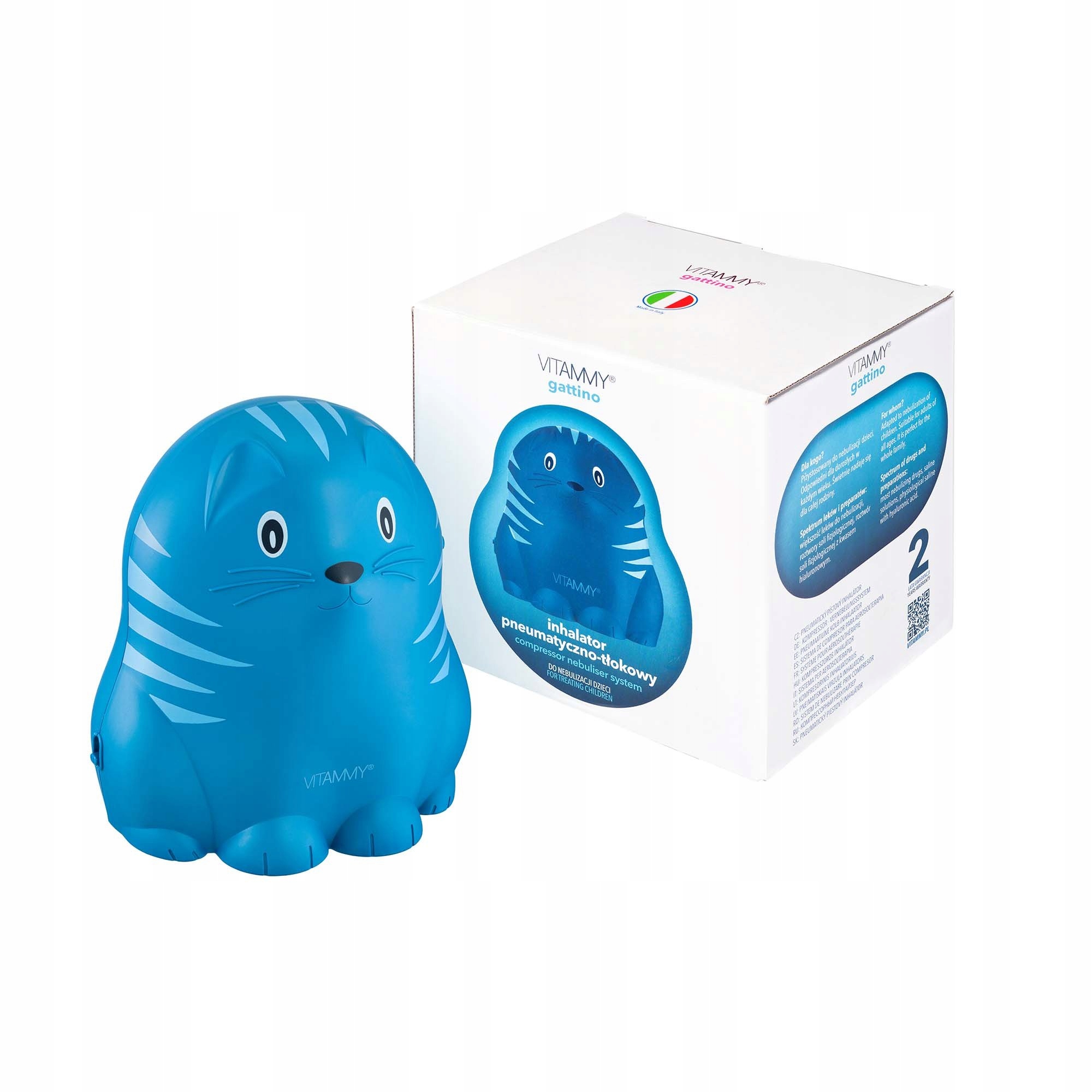 Он представляет собой дружелюбного котенка, доступного в двух цветах: бирюзовом и розовом. Его форма и атласный, приятный на ощупь корпус облегчают вдох и вызывают у детей доверие. Ингалятор Vitammy Gattino является сертифицированным медицинским устройством с параметрами распыления в соответствии со стандартом PN-EN13544-1. Имеется руководство пользователя на польском языке.