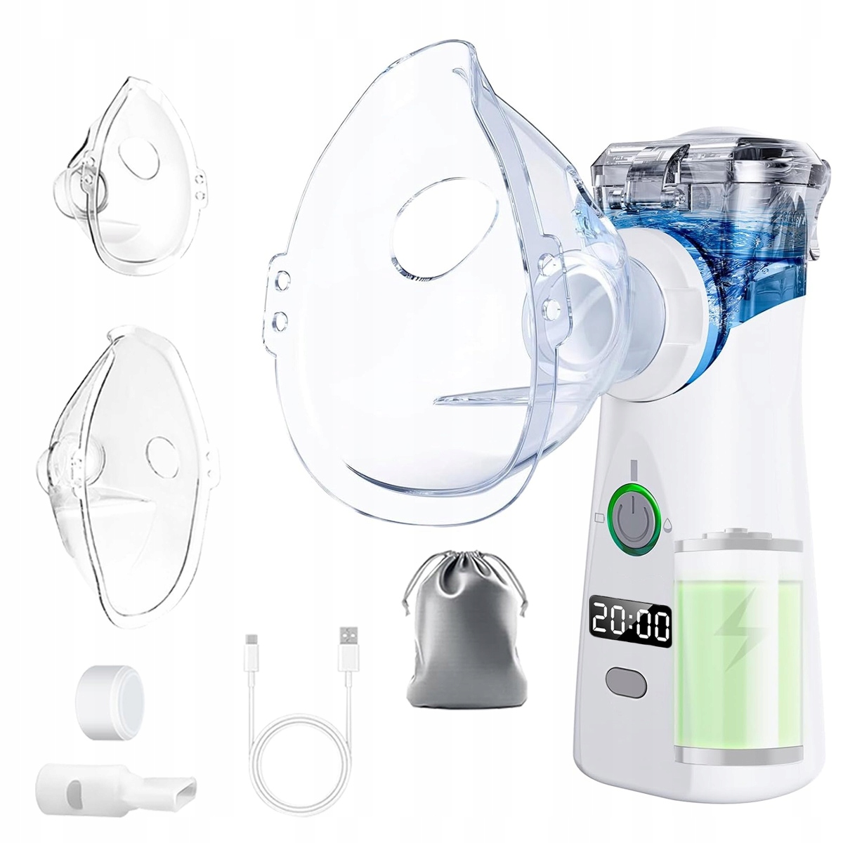 Компактная и портативная - компактная и легкая конструкция, простая в переносе. Контейнер с накированной жидкостью уменьшает количество остатков. В наборе: 1 x ручной небулайзер, 1 X сопло, 2 x маска (для детей и взрослых), 1 x USB -тип C Кабель зарядки C, 1 X хранения, 1 x сокращенное руководство пользователя и руководство пользователя.