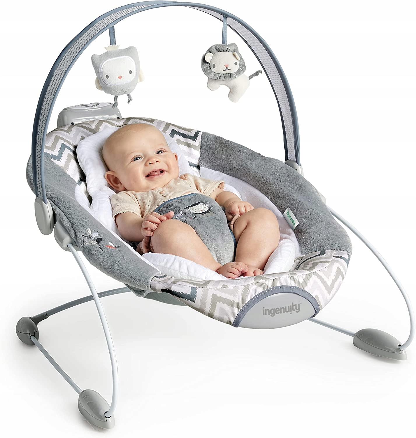 Автоматический шезлонг Ingenuity SmartBounce — действительно умная качалка: благодаря этому у мамы свободны руки во время напряженного дня. Эта люлька оснащена 2 различными скоростями для легкого или чуть более выраженного покачивания, при этом она качается автоматически в течение 30 минут, имитируя таким образом естественные движения мамы. Современный стиль Брейдена выдержан в нейтральных оттенках, которые хорошо вписываются в любой интерьер. Идеально подходит для девочек и мальчиков. Сиденье-люлька имеет съемную опорную подушку и имеет мягкую набивку, обеспечивающую комфорт вашего ребенка. Дополнительные возможности для успокоения малыша: 12 мелодий, 3 звука природы и шумов, а также поворотная игровая панель и 2 плюшевые игрушки. Технология Hybridrive продлевает срок службы батарей в два раза по сравнению с традиционными подставками. Трехточечный ремень безопасности и подушку сиденья, которую можно стирать в машине.