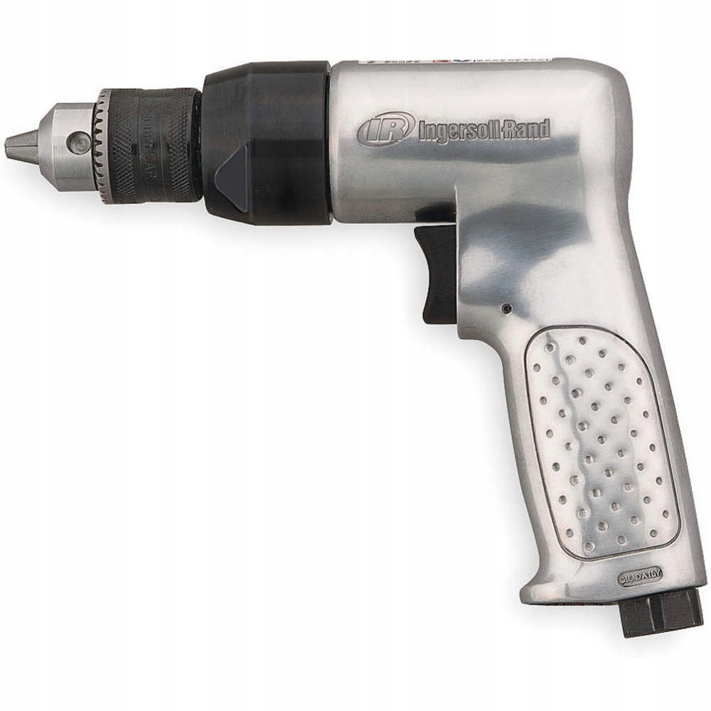 Пневматическая пистолетная дрель Ingersoll Rand 7802A со стандартным сверлильным патроном. Это мощная дрель компактной и легкой конструкции с курком, обеспечивающим плавное изменение скорости.