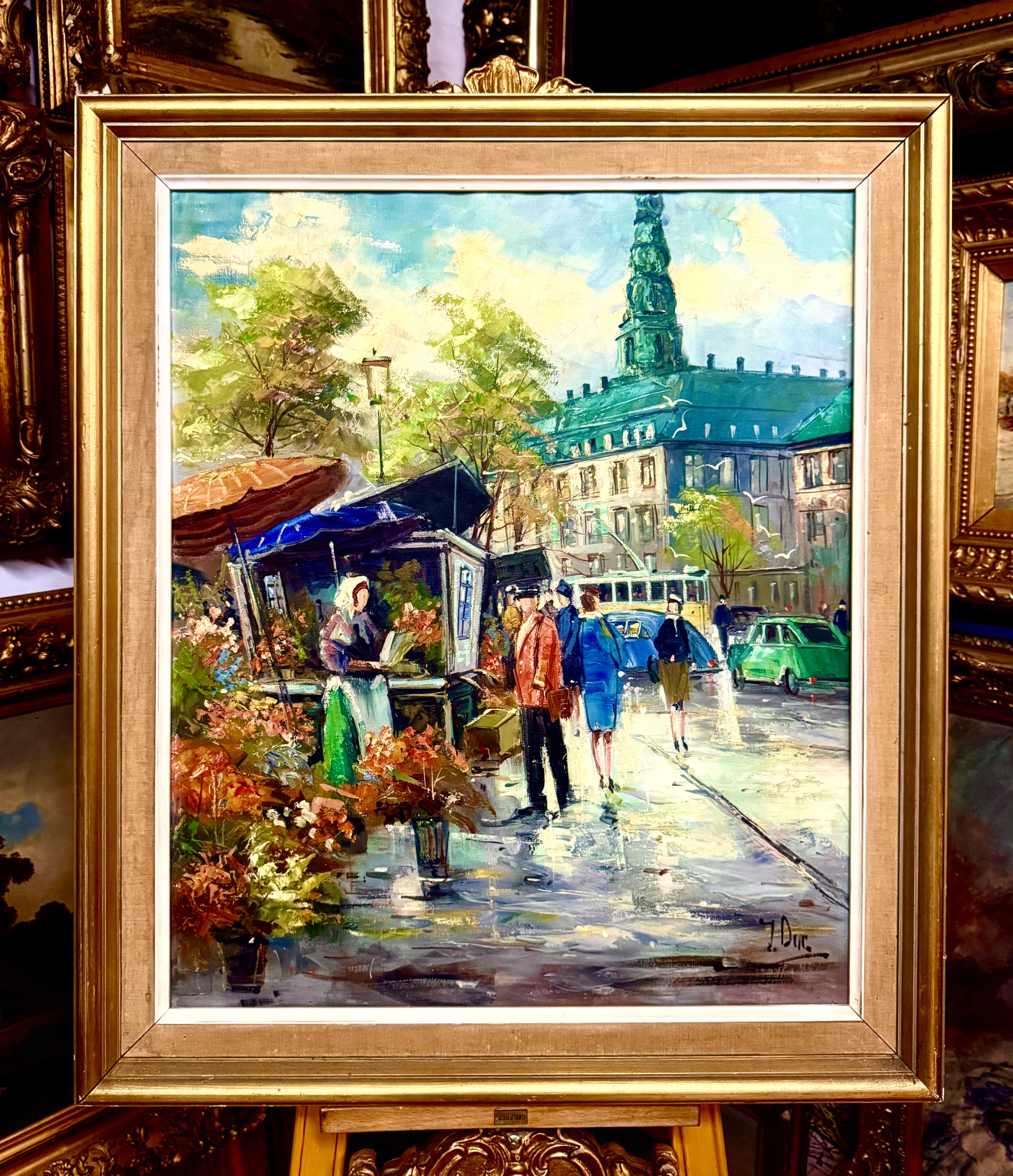 Ingolf Due 1912 - Цветочный рынок Копенгагена очень ценное старое изображение и рамка