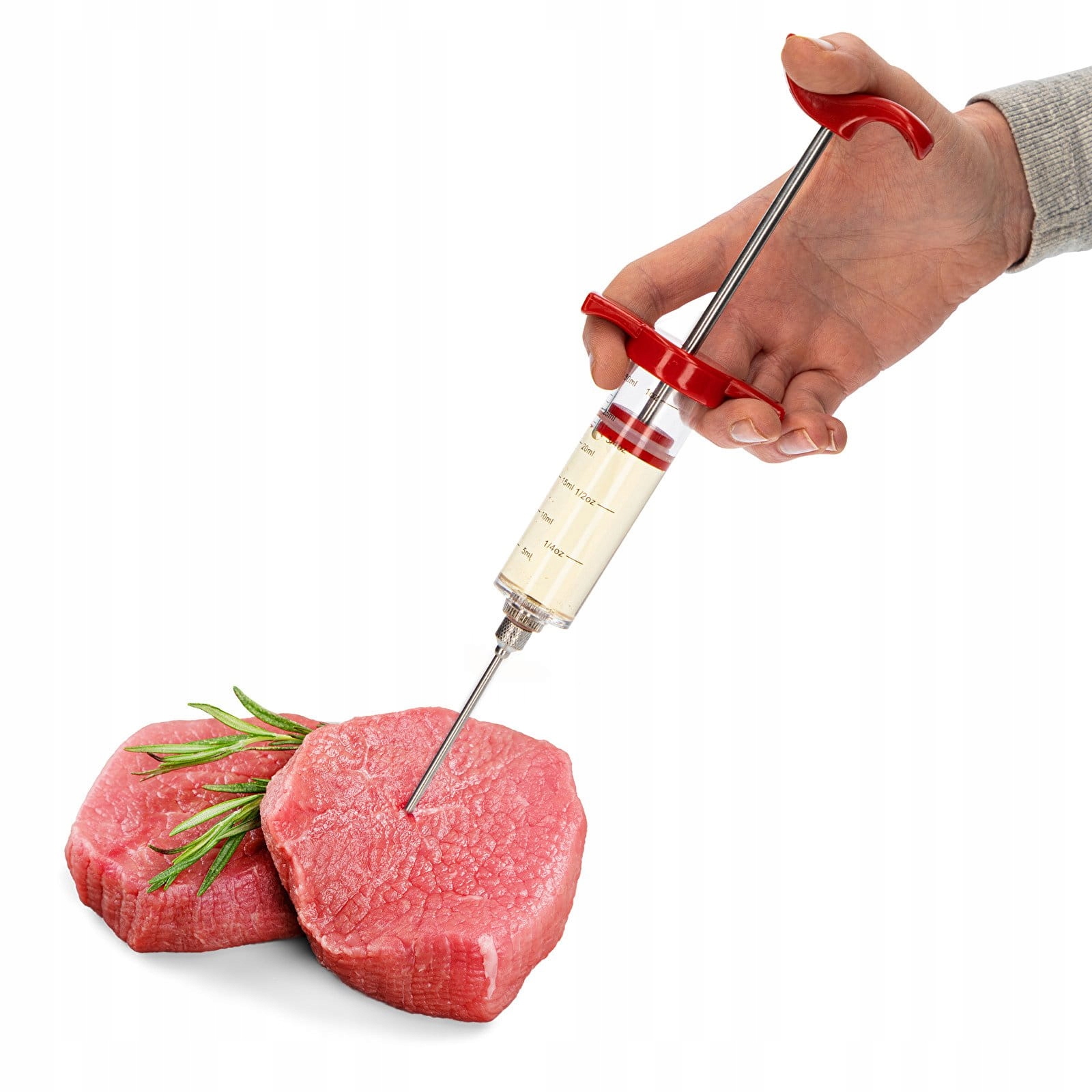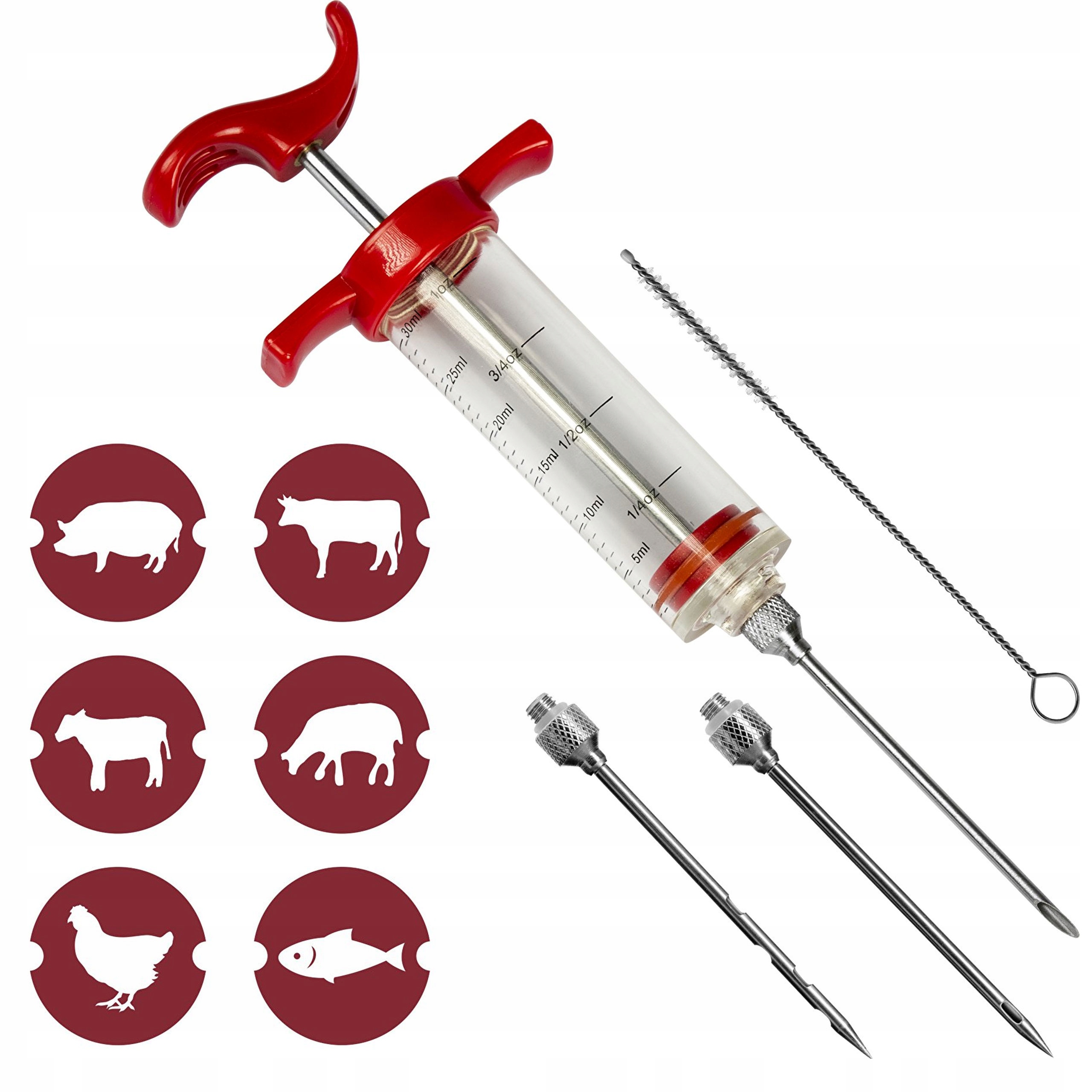 Удобный в использовании, качественный шприц емкостью 30 мл и три дозирующие иглы помогут вам профессионально инъецировать мясо посолочным рассолом. Они также значительно ускорят процесс заживления. Ваша любимая традиционная ветчина, окорок и т. д. теперь станет нежной и останется свежей дольше.