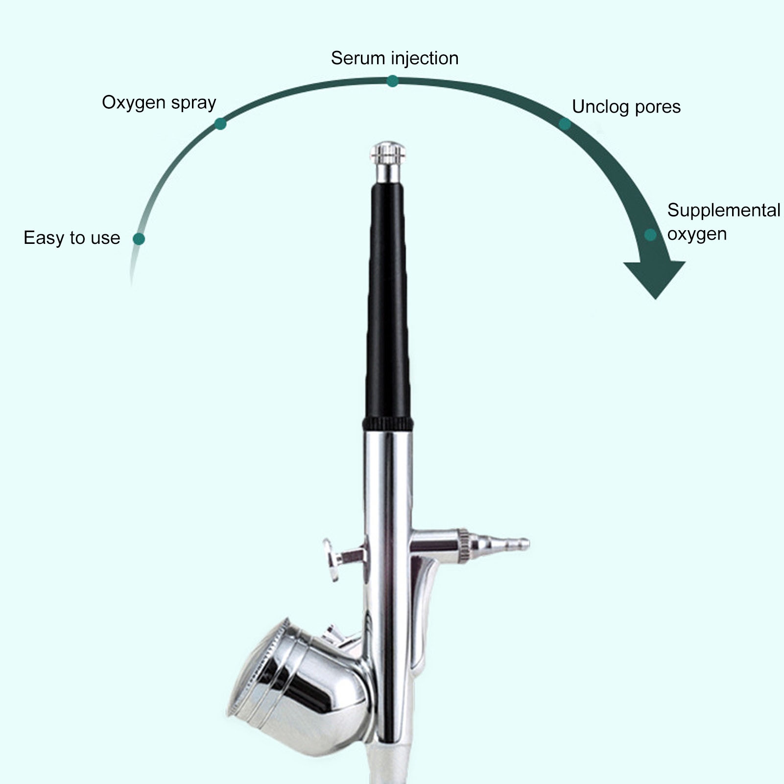 4. Портативный размер: главный кислородный инжектор для лица небольшой и легкий, его легко носить с собой и использовать, эргономичная ручка удобна для захвата.