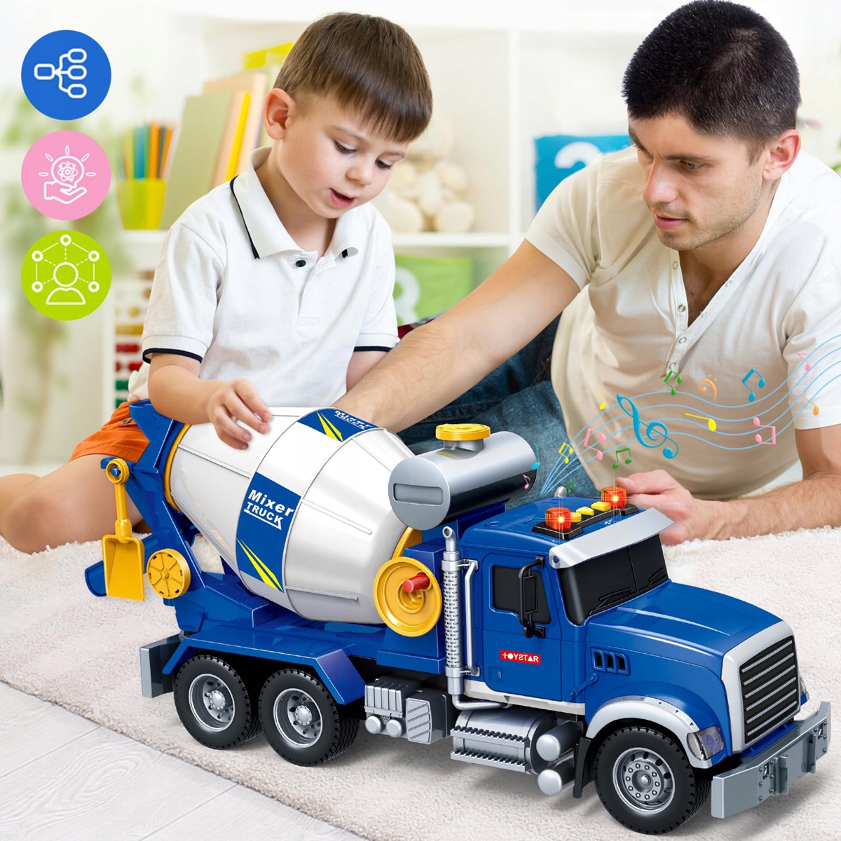 - 🔵 Интерактивная наука - вращающийся ролик 360 ° и кривошип позволяет детям узнать о действии бетонного миксера.