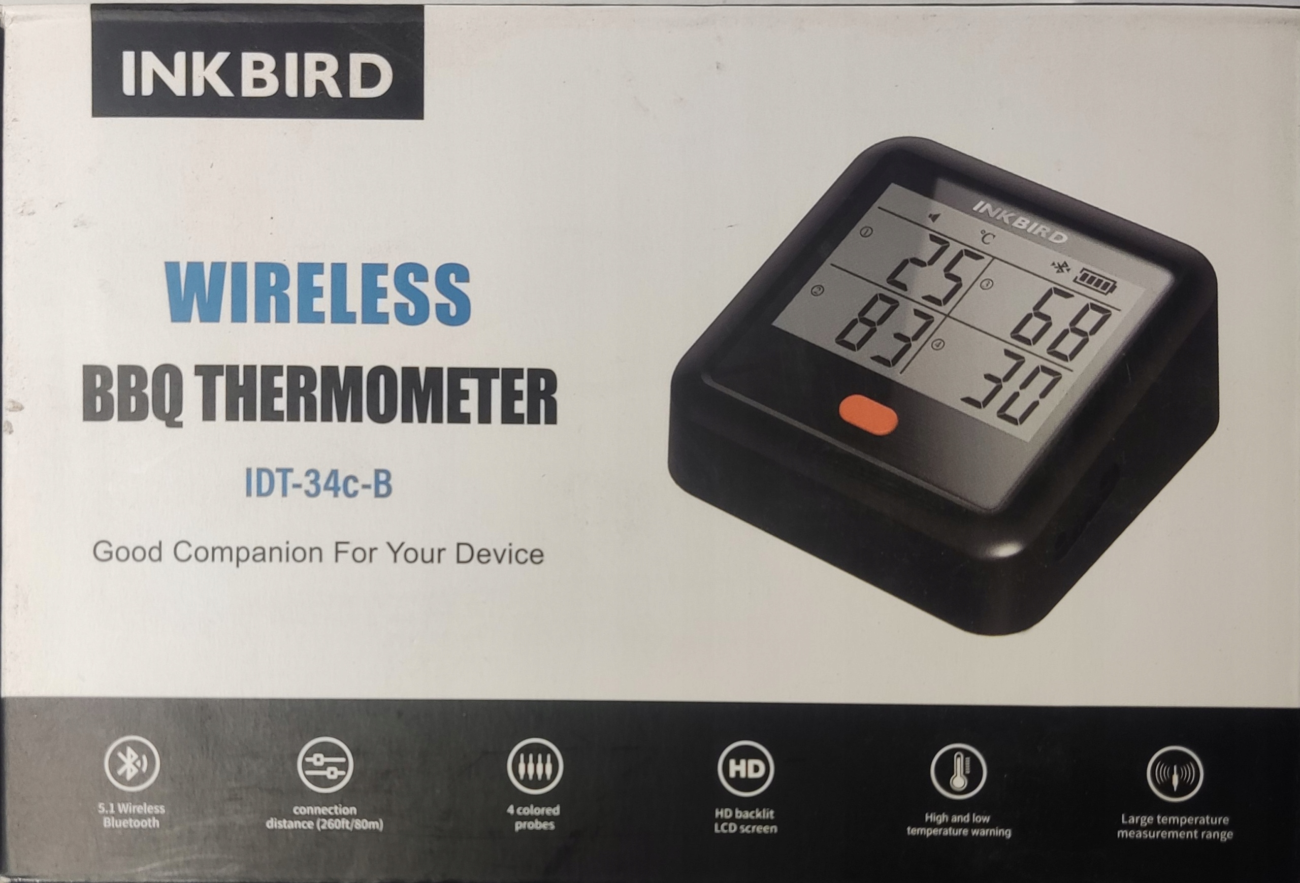 Чернильная птица IDT-34C-B Мясомет 4 Термометр 4 зонд гриль беспроводное курение