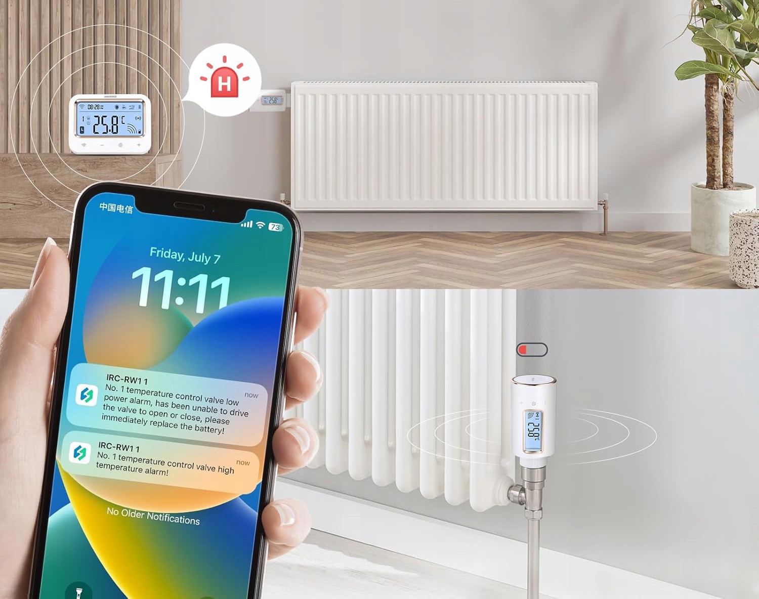 Безопасность имеет решающее значение, поэтому устройство оснащено высокой/низкой температурной сигнализацией , которые активируются, когда температура превышает установленное ограничение, и приложение немедленно отправляет уведомление. Кроме того, термостат предлагает функции защиты от Frost , камня -уплотнения и режима праздника. Роторный дисплей больших размеров и возможность установления в различных конфигурациях обеспечивает удобный доступ к информации о температуре и состоянии устройства.