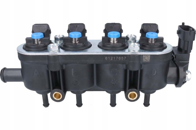 Транс-форсунка MED. 4 цил. с форсунками, отмеченными синим цветом. В комплекте датчик давления Bosch. Это новая версия черных форсунок с 4 отверстиями. Новые форсунки имеют 12 отверстий. Улучшают линейность потока, более устойчивы к пульсации дозированной дозы СУГ, более устойчивы к осаждению загрязнений.