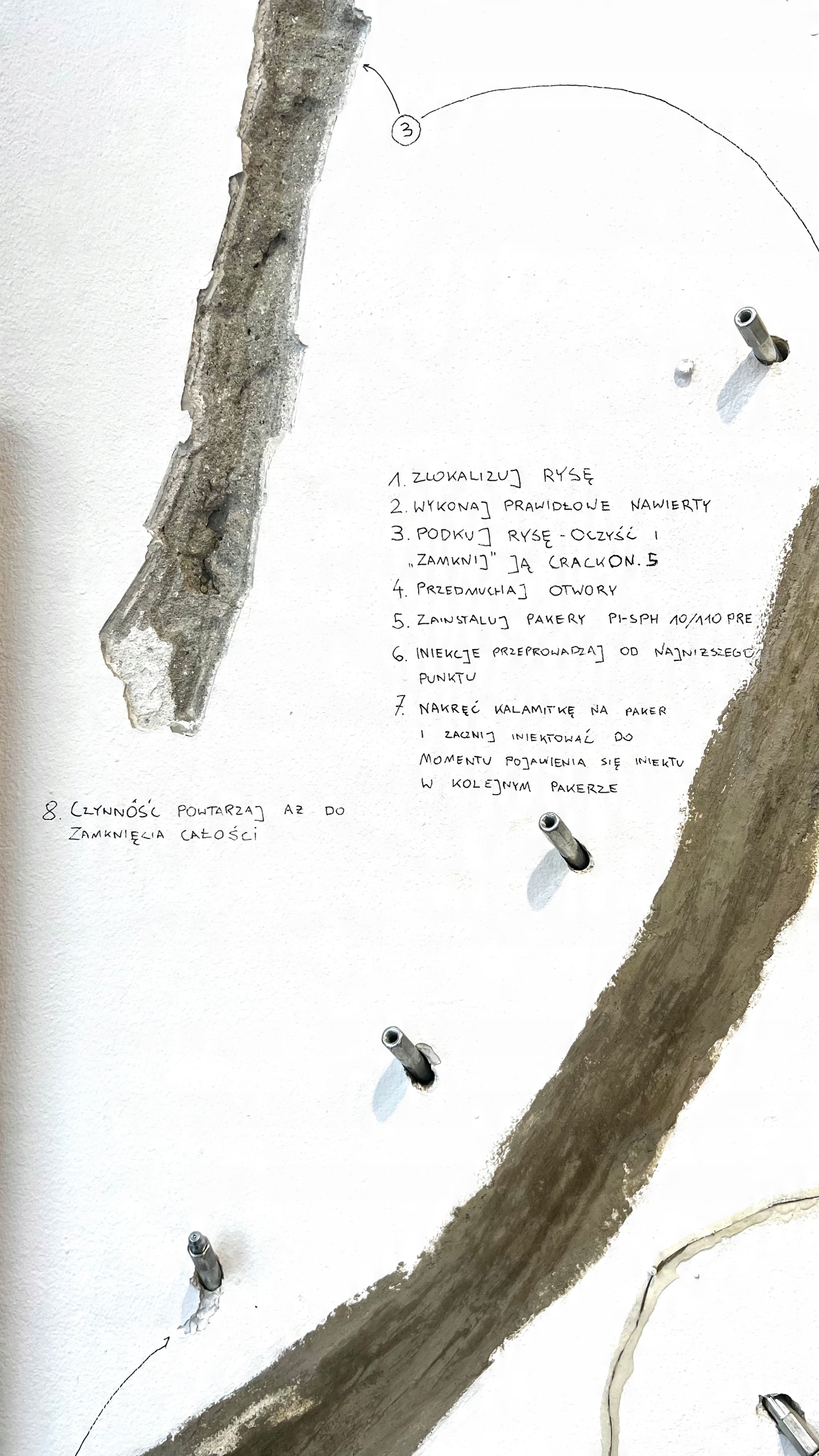 - полиуретановые смолы с низким пенообразованием, такие как ResinBau CrackFlex, мы используем как стабилизаторы структуры с очень хорошей адгезией и гибкими свойствами. Это смола, пригодная для герметизации конструкций от давления воды, но ее следует использовать, когда есть возможность застыть перед промывкой (3 – 10 минут).
