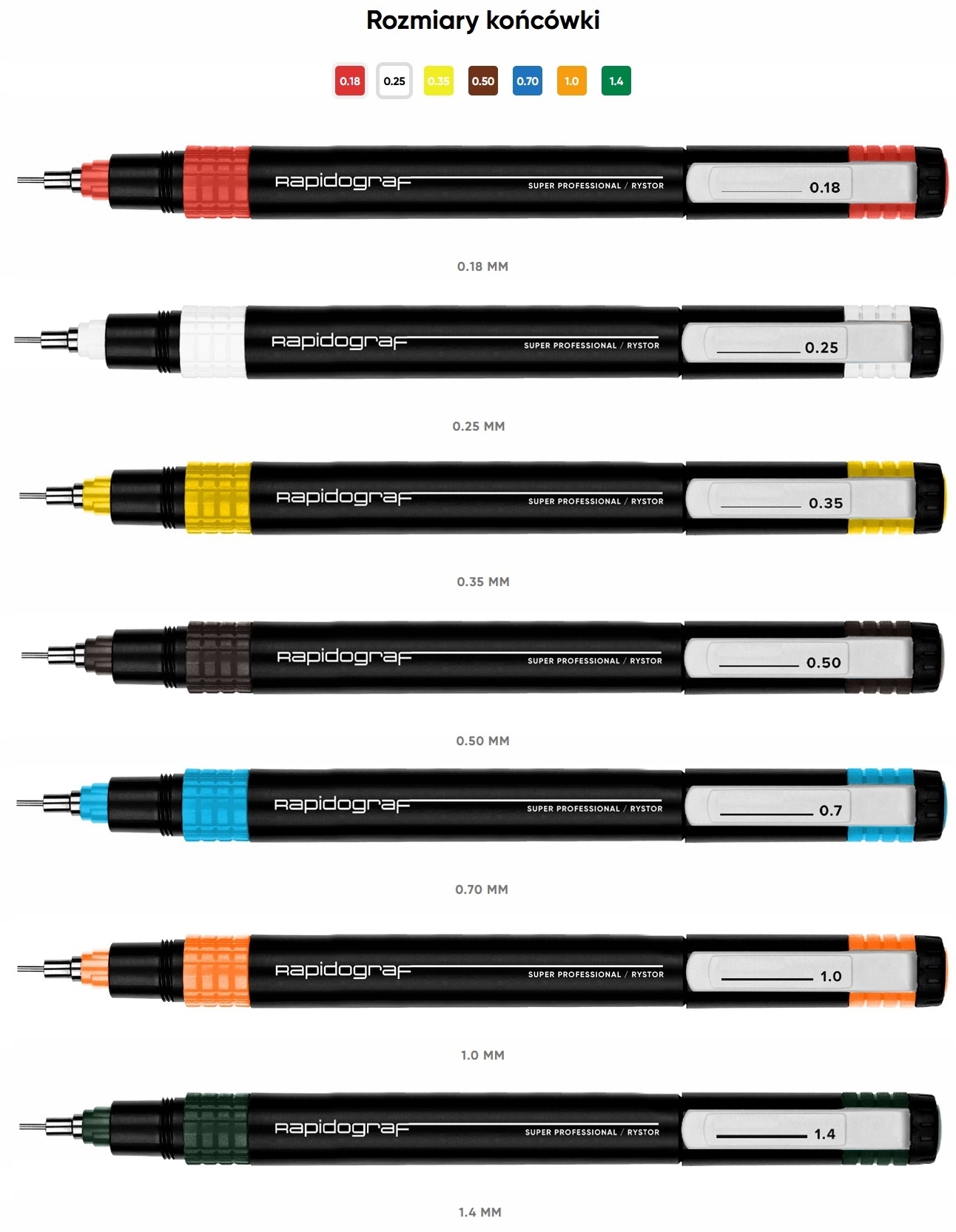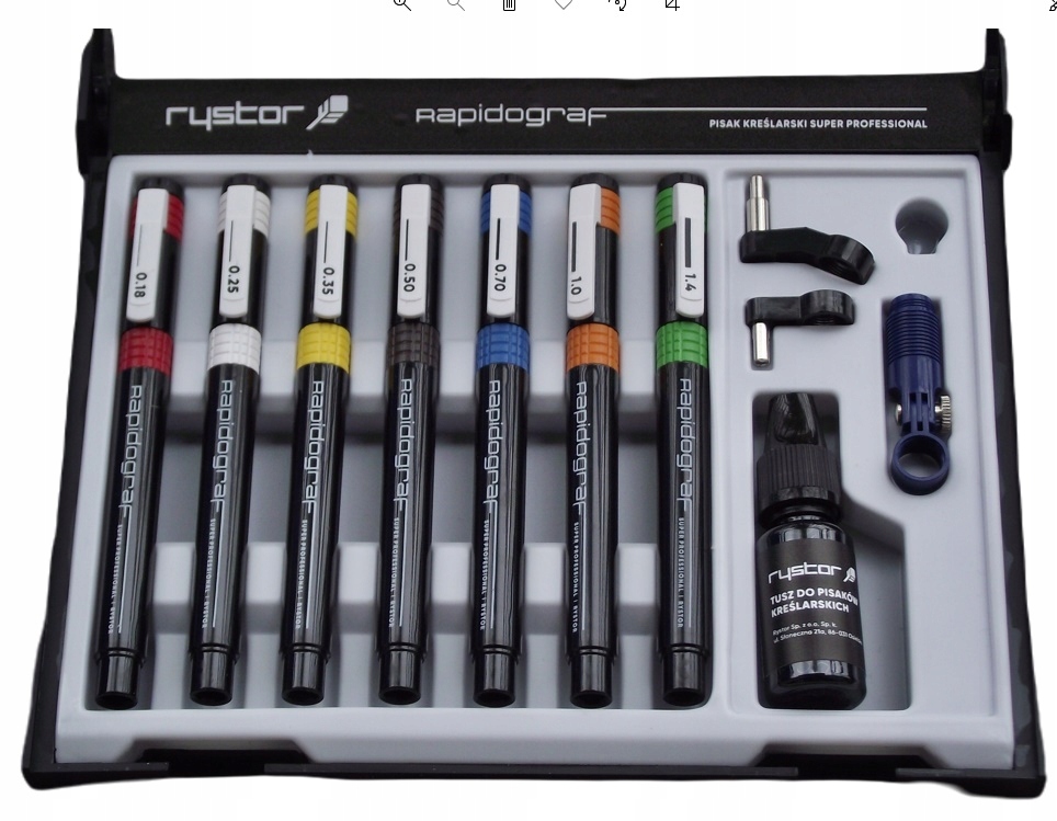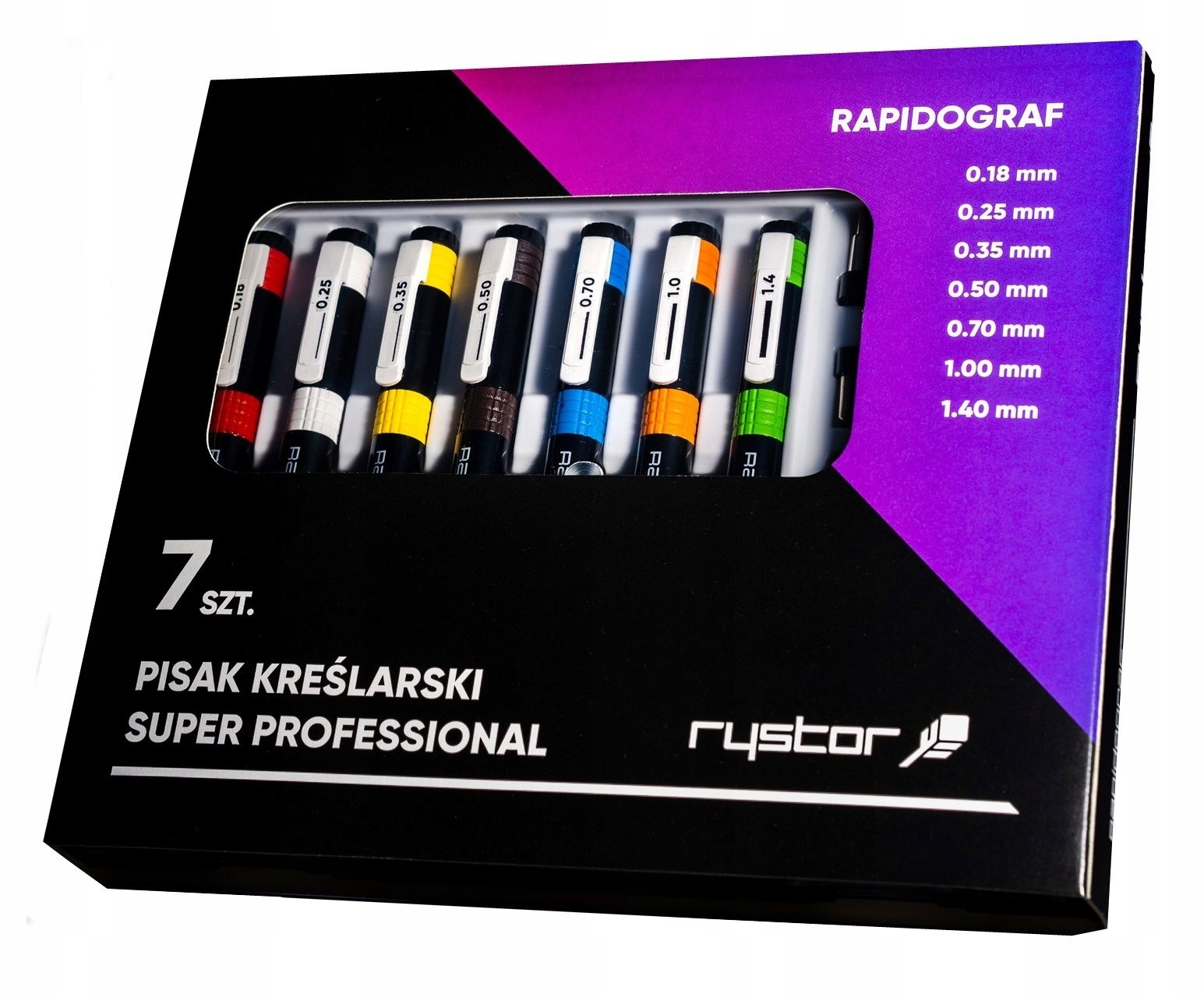 Практичный набор качественных ручек-рапидографов от Rystor Super Professional — точное и простое в использовании устройство для рисования водоэмульсионными чернилами на кальке, бумаге, чертежном картоне и бристольском картоне.