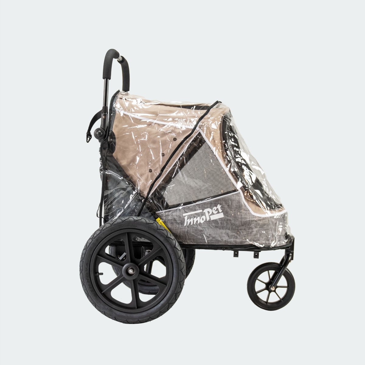 InnoPet Sporty Evolution — коляска с велоприцепом для собаки или кошки в современном исполнении. Теперь вы можете взять своего четвероногого друга куда угодно. Sporty Evolution может взять на борт до 30 кг и обеспечивает исключительно комфортную езду для вас и вашего питомца благодаря большим и прочным пневматическим шинам сзади. Спицы колес изготовлены из качественного пластика, а значит, ржавые спицы остались в прошлом. Помимо фантастического дизайна, этот продукт также обладает рядом замечательных функций, что делает его комплексным решением. Возьмите велосипед из сарая и отправляйтесь в путь вместе с другом!