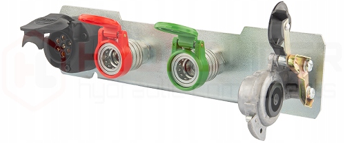Плата польского производства оснащена типичной 7-контактной электрической розеткой, двумя быстродействующими гидравлическими разъемами, евророзеткой с резьбой M22x1,5, пластиковыми самозакрывающимися пылезащитными колпачками и стандартным подвижным разъемом для мягкого воздуха для пневматической тормозной системы. Он идеально подходит вместо старой оригинальной доски. Расстояние между монтажными отверстиями также идентично.