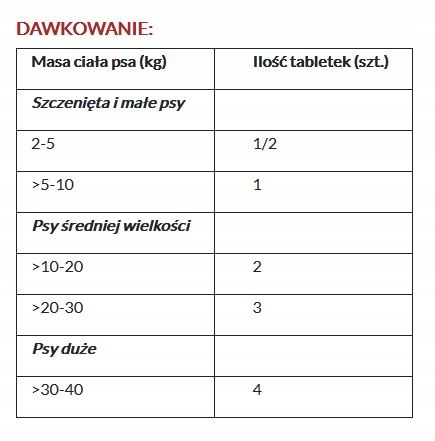 Рекомендуемая доза: 1 таблетка на 10 кг массы тела
