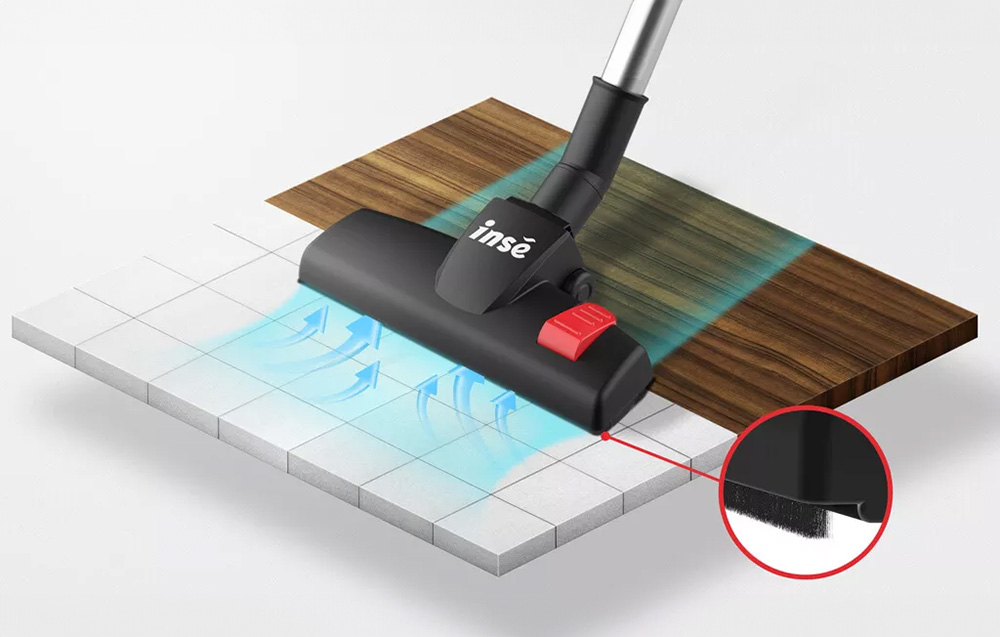 Пылесос INSE I5 оснащен широкой щеткой, с помощью которой можно очищать различные типы поверхностей. Он хорошо подойдет для ковров с коротким волокном, деревянных полов, плитки и т. д. Более того, с помощью специального переключателя вы можете регулировать высоту волокна щетки в зависимости от ваших потребностей. Это решение также предотвращает появление царапин на деликатных поверхностях.